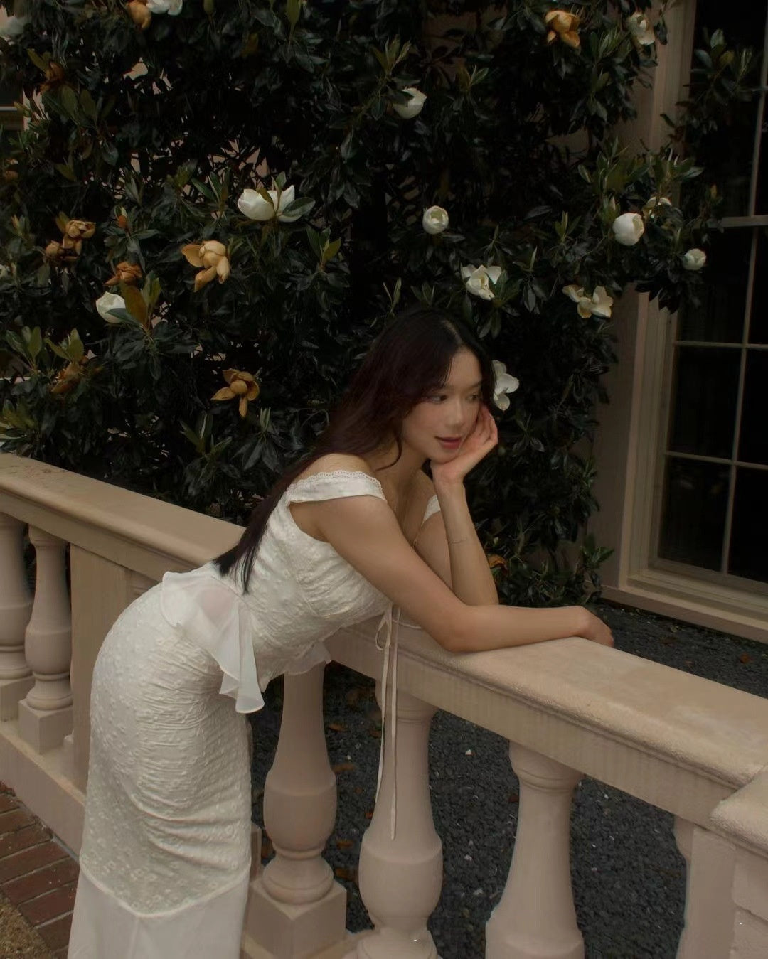 • 1x Camila : Baumwollbluse mit Stickerei und Spitzenrock Frühling Frau