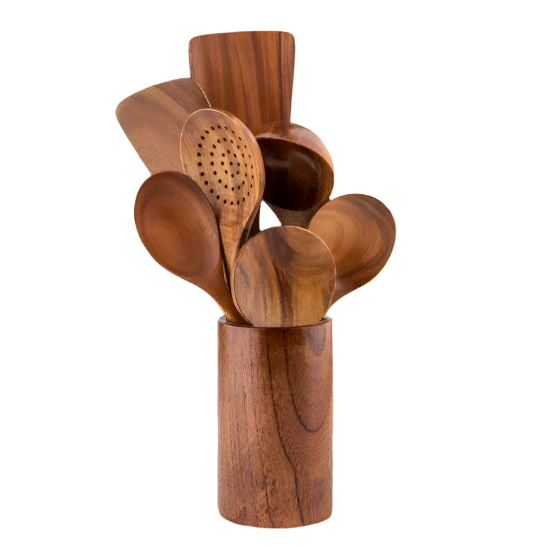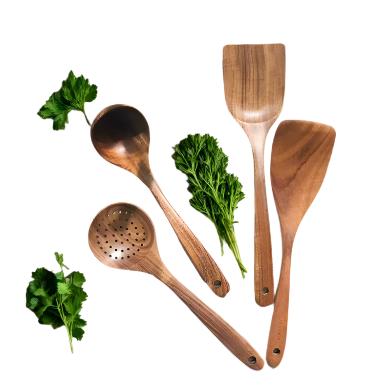 Jedes Utensil ist für eine komfortable Handhabung konzipiert, mit robusten Griffen aus Holz oder Edelstahl, die einen natürlichen Halt bieten. Die Silikonköpfe sind flexibel, aber stark, ideal für das Kochen bei hohen Temperaturen, ohne Pfannen zu beschädigen. Wenn das Kochen beendet ist, können Sie sie einfach abspülen oder in die Spülmaschine geben für eine mühelose Reinigung.