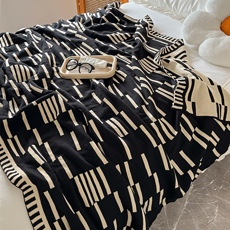 Bereichern Sie Ihren Wohnraum mit der CozyNest Luxe Überwurfdecke, die mit einem eleganten Streifenmuster ausgestattet ist und nahtlos in moderne Innenräume integriert werden kann. Ihre weiche Textur und das raffinierte Design machen sie zur perfekten Ergänzung für jeden Raum und bieten sowohl Wärme als auch ästhetischen Reiz.