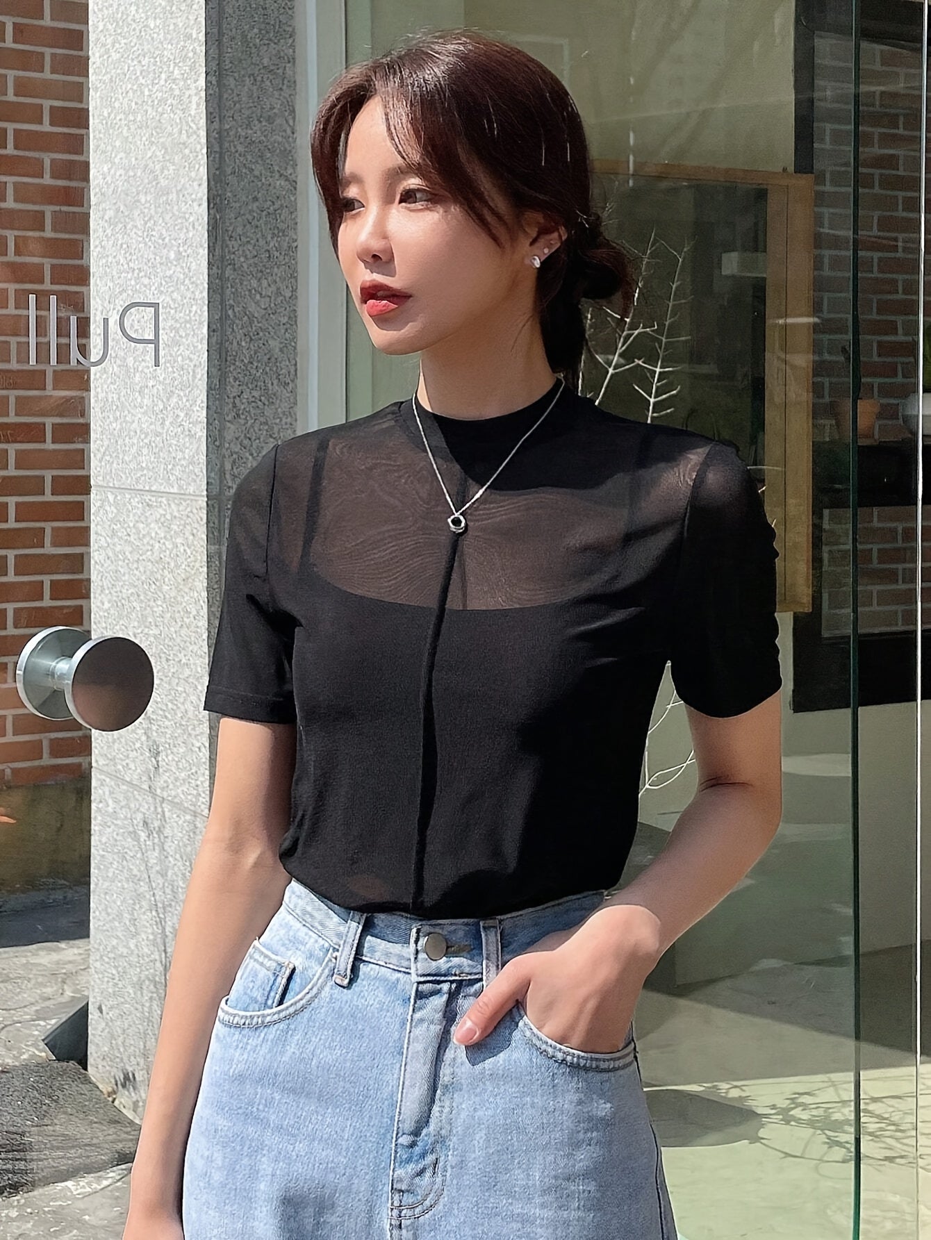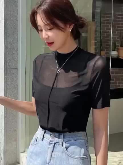 Damen-Bluse mit Mesh-Panelen – Elegant, Kurzarm & Transparent für Sommer