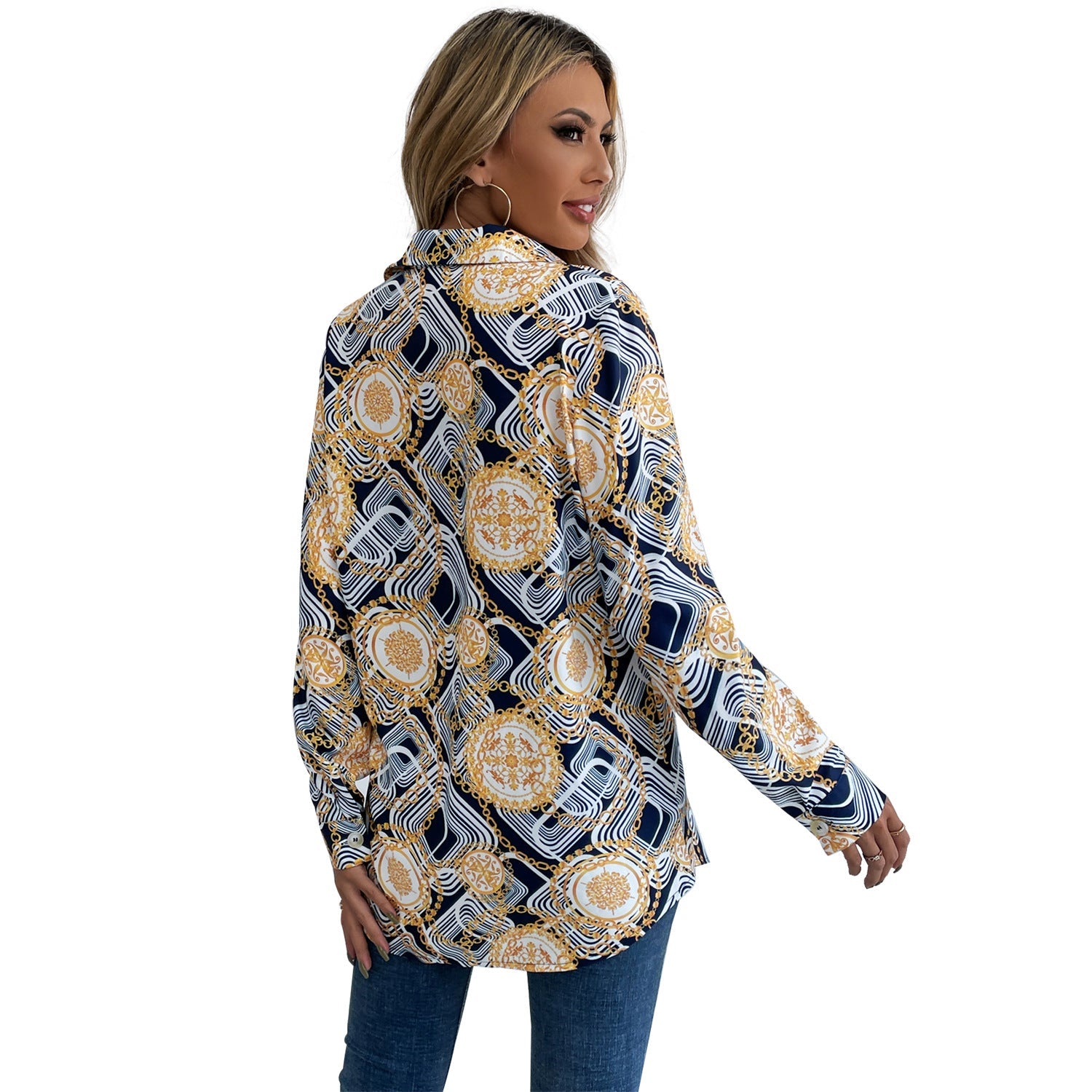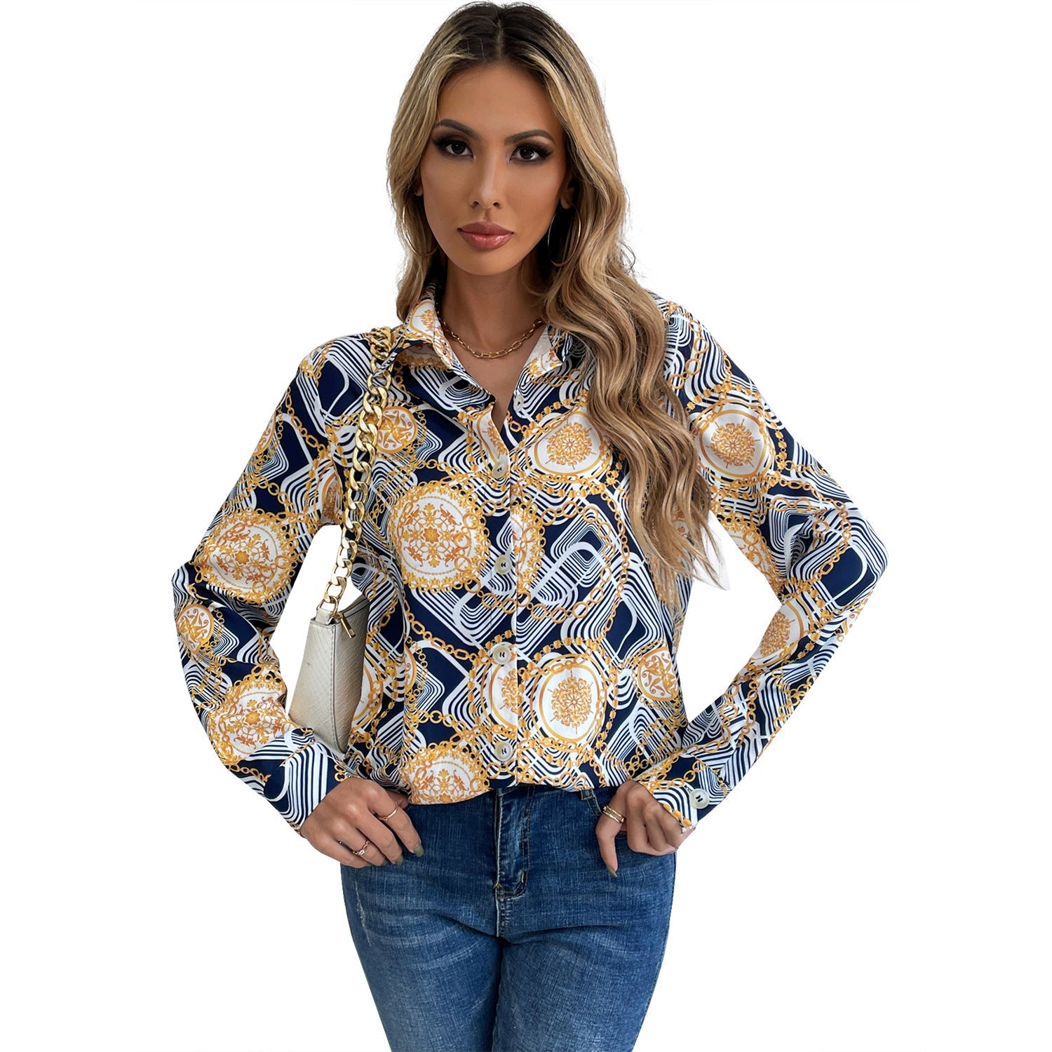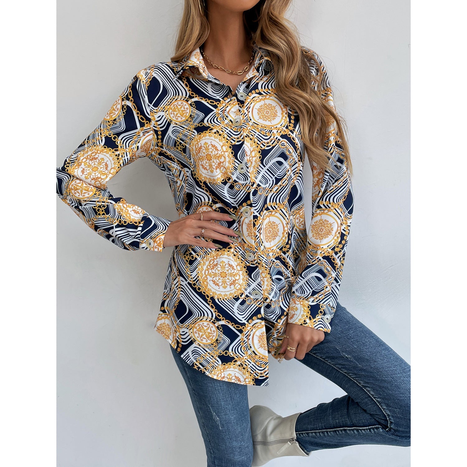 Entdecken Sie unser hochwertiges, geblümtes Shirt mit eleganten Langärmeln und einem klassischen, knöpfbaren Kragen. Dieses stilvolle Damenoberteil vereint modisches Design mit hohem Tragekomfort und ist somit ideal für jeden Anlass.