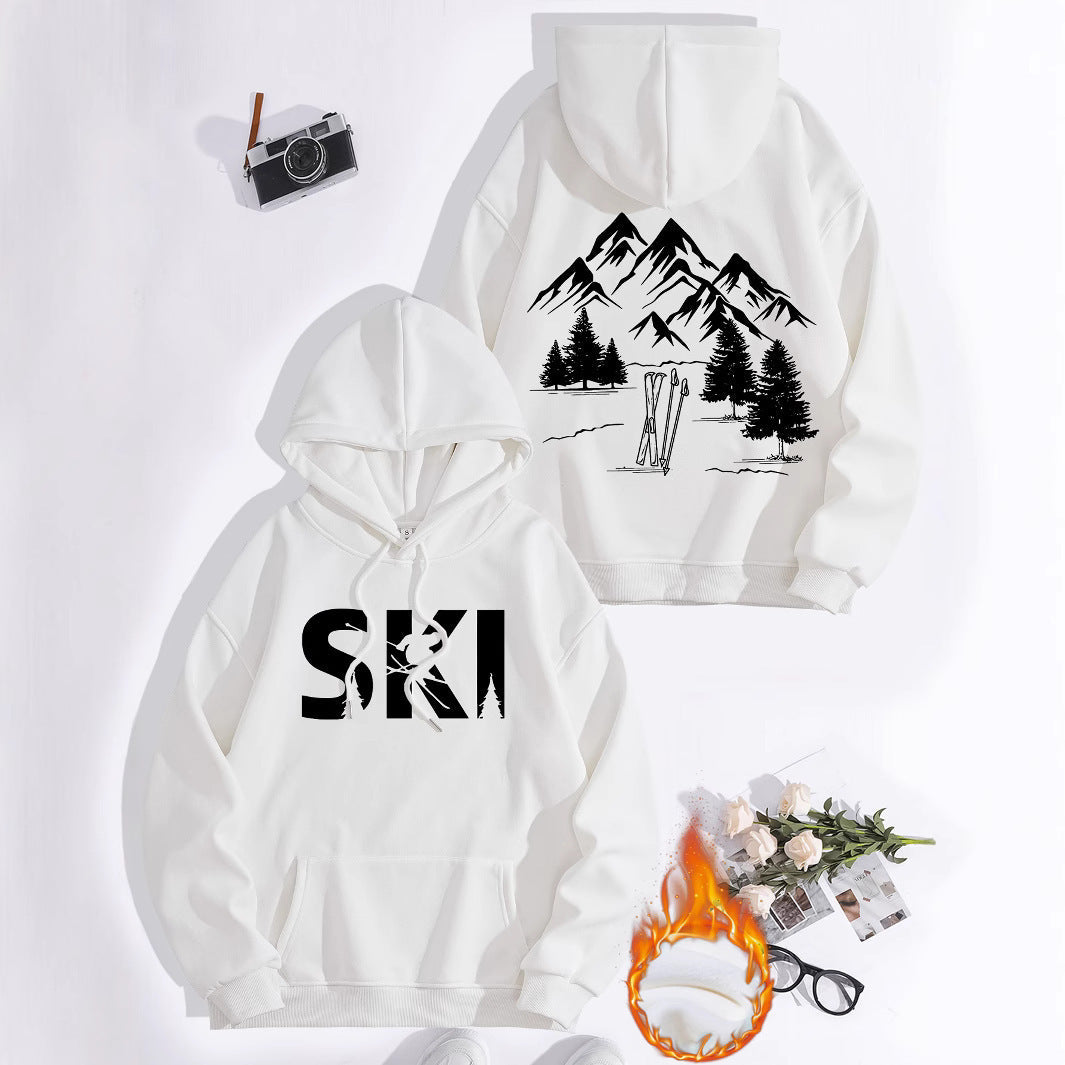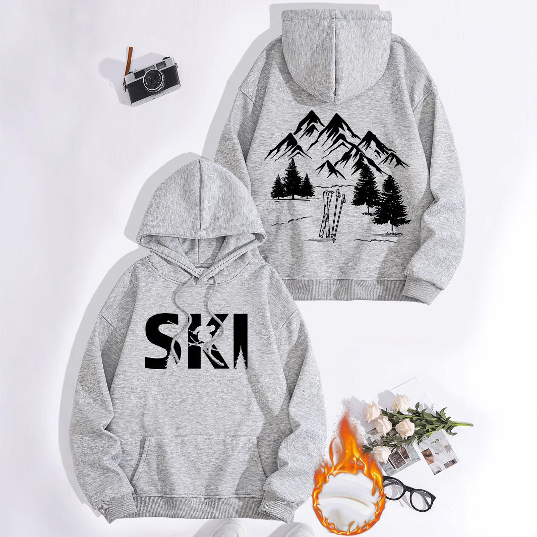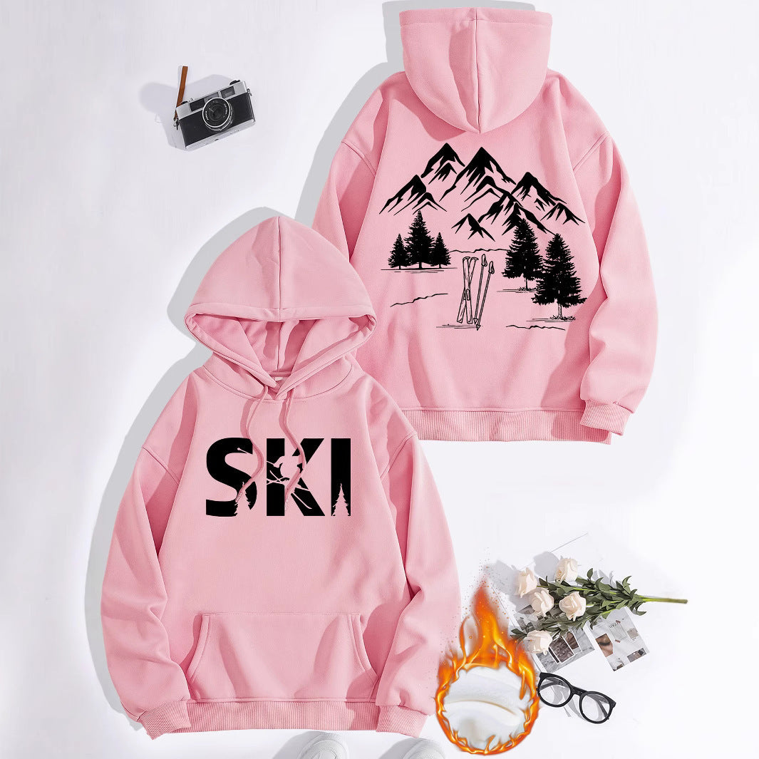 Damen Kapuzenpullover mit kunstvollem Ski-Design und gemütlicher Passform