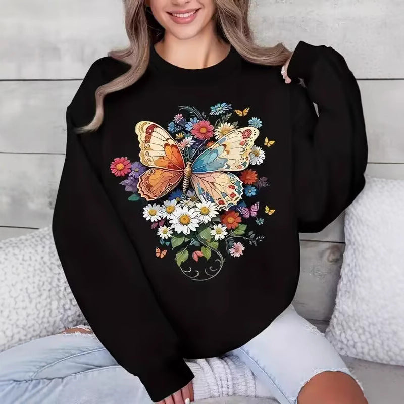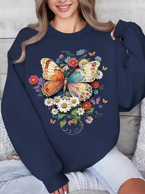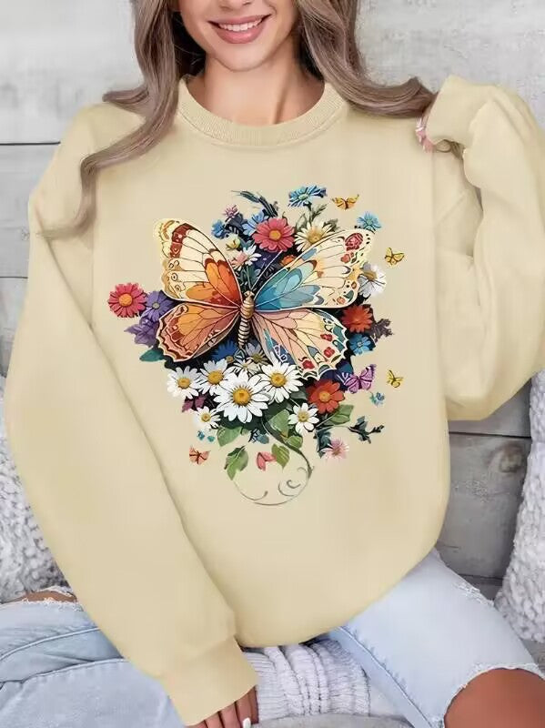 Damen Langarm Sweatshirt mit floralem Schmetterlingsdruck