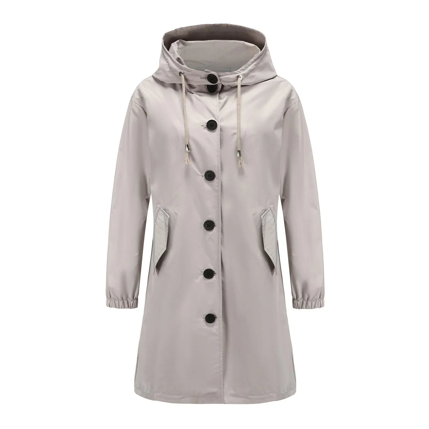 Damen Regenmantel mit Kapuze und Knöpfen