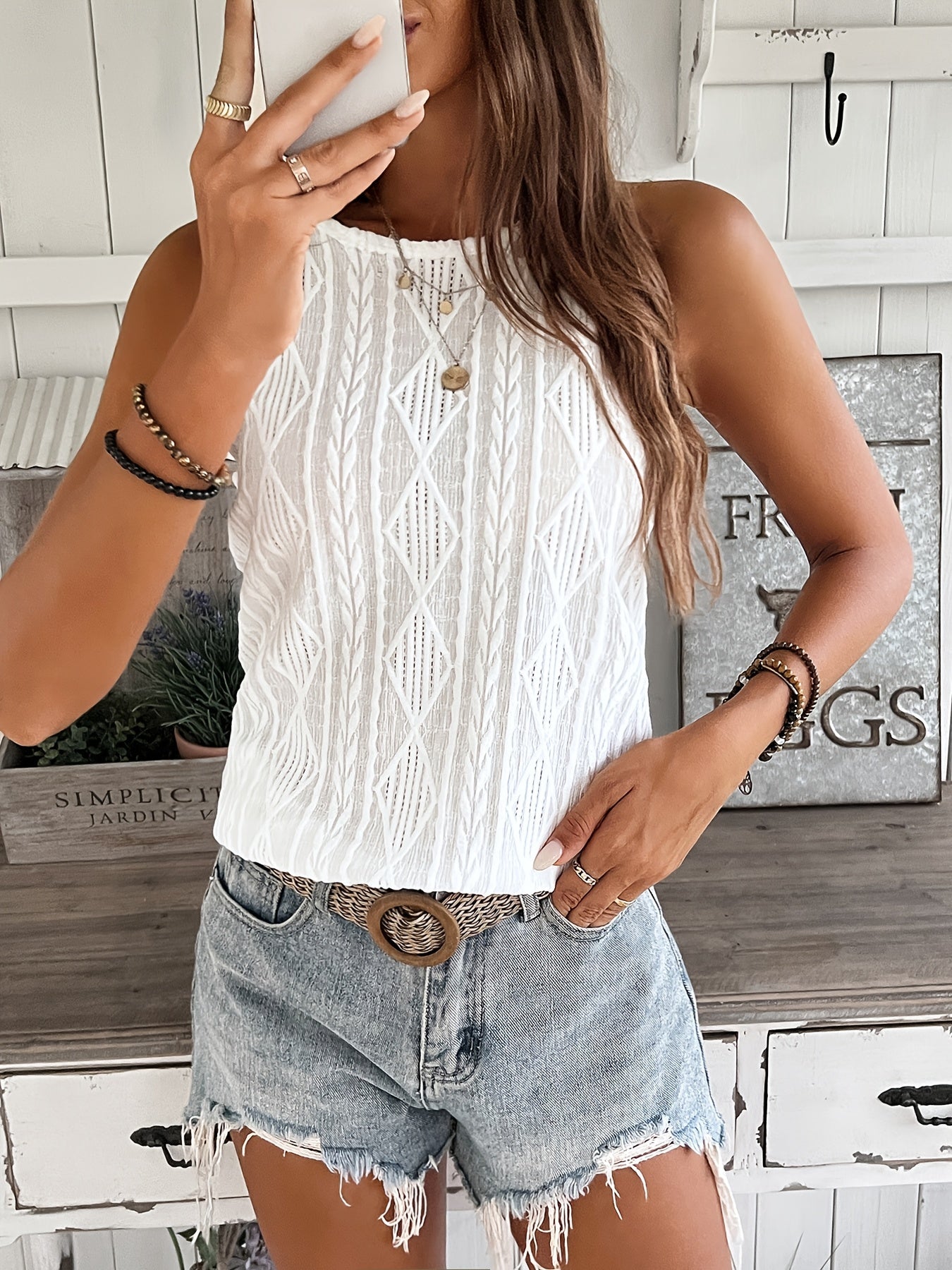 Damen-Sommer-Top aus Leinen – Ärmellos, Weiß & Strukturiert, Lässig & Vielseitig