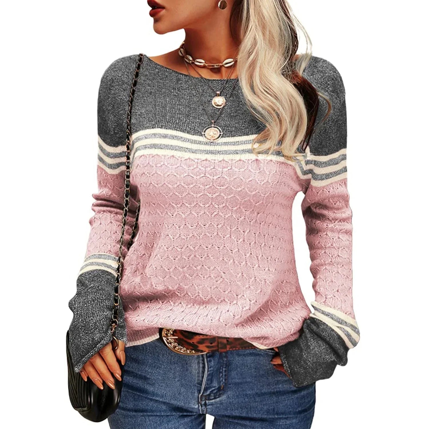 Damenpullover mit Rundhalsausschnitt und Streifenmuster