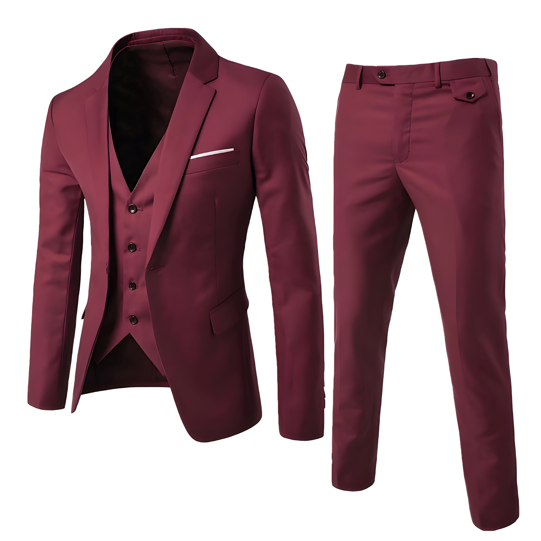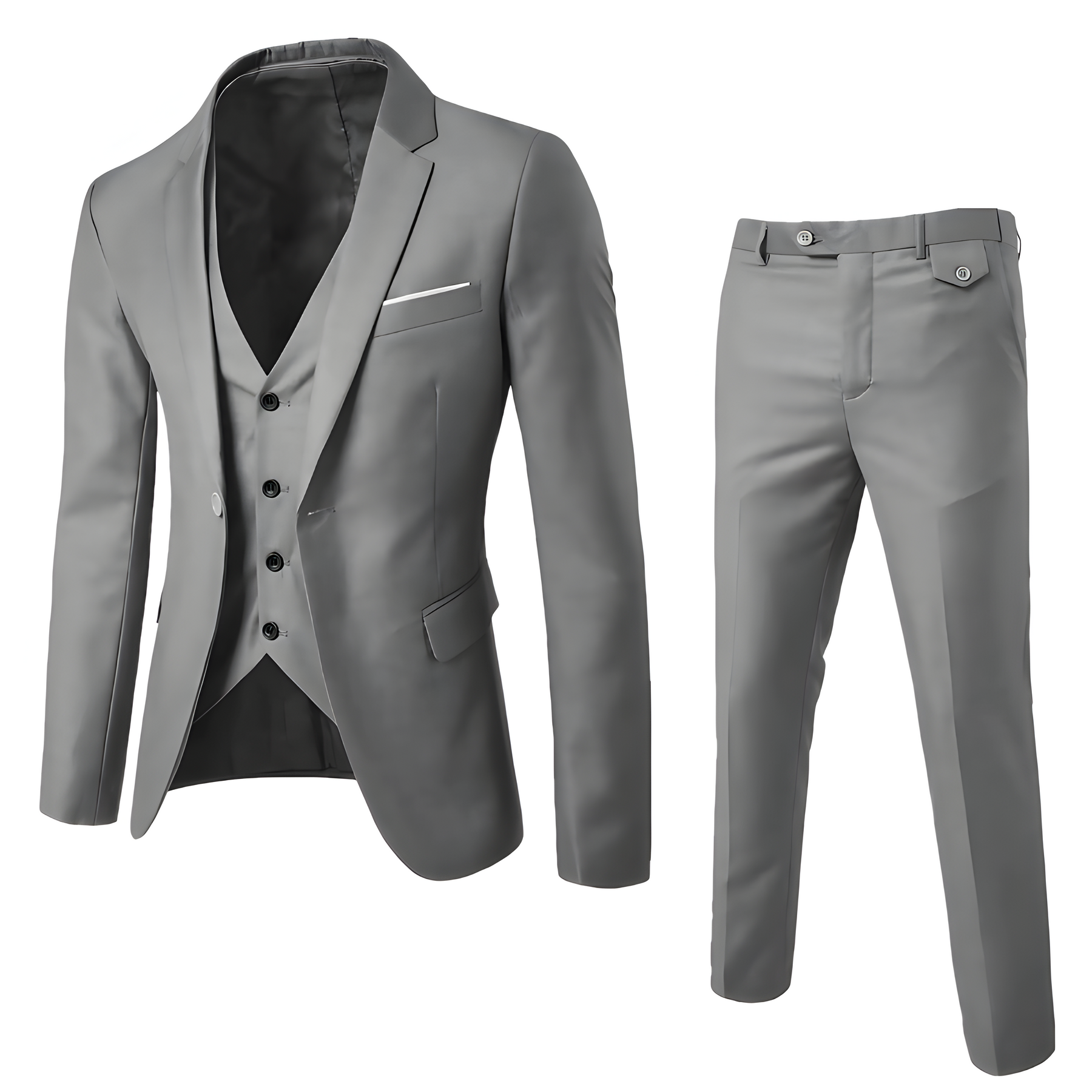 Dieser dreiteilige Anzug verleiht deinem Auftritt Klasse, Struktur und moderne Raffinesse. Perfekt abgestimmt für geschäftliche Meetings, elegante Feiern oder stilvolle Anlässe, das Set aus Sakko, Weste und Hose sorgt für einen souveränen Look mit einem klaren Statement. Die schlanke Passform betont die Silhouette, ohne einzuengen, und lässt dich bei jedem Anlass stilsicher erscheinen. Ein vielseitiger Klassiker für Männer mit Anspruch an Stil und Qualität.