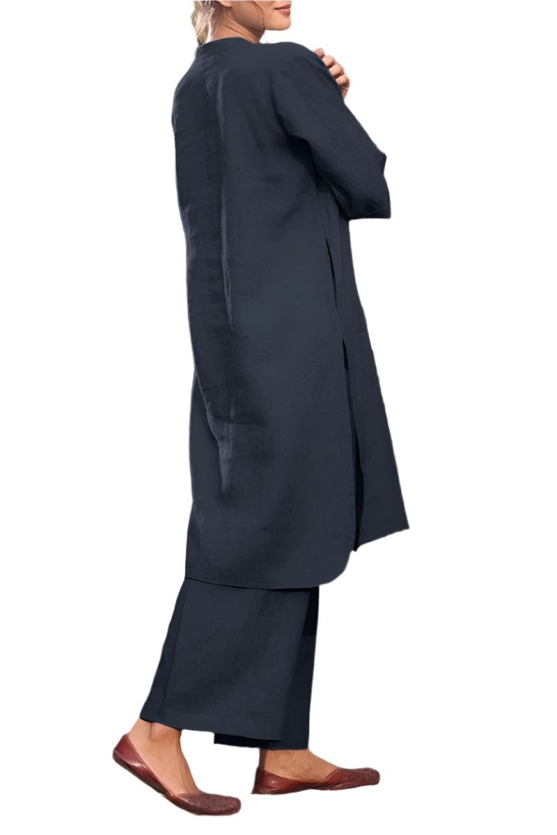 Das EaseMode Loungeset bietet die perfekte Balance zwischen Komfort und lässiger Eleganz. Mit einem langärmligen Oberteil mit Rundhalsausschnitt und passenden, weit geschnittenen Hosen ist dieses koordinierte Outfit für entspannte Tage, gemütliche Abende oder lässige Ausflüge geschaffen – und hält dich dabei mühelos stilvoll.