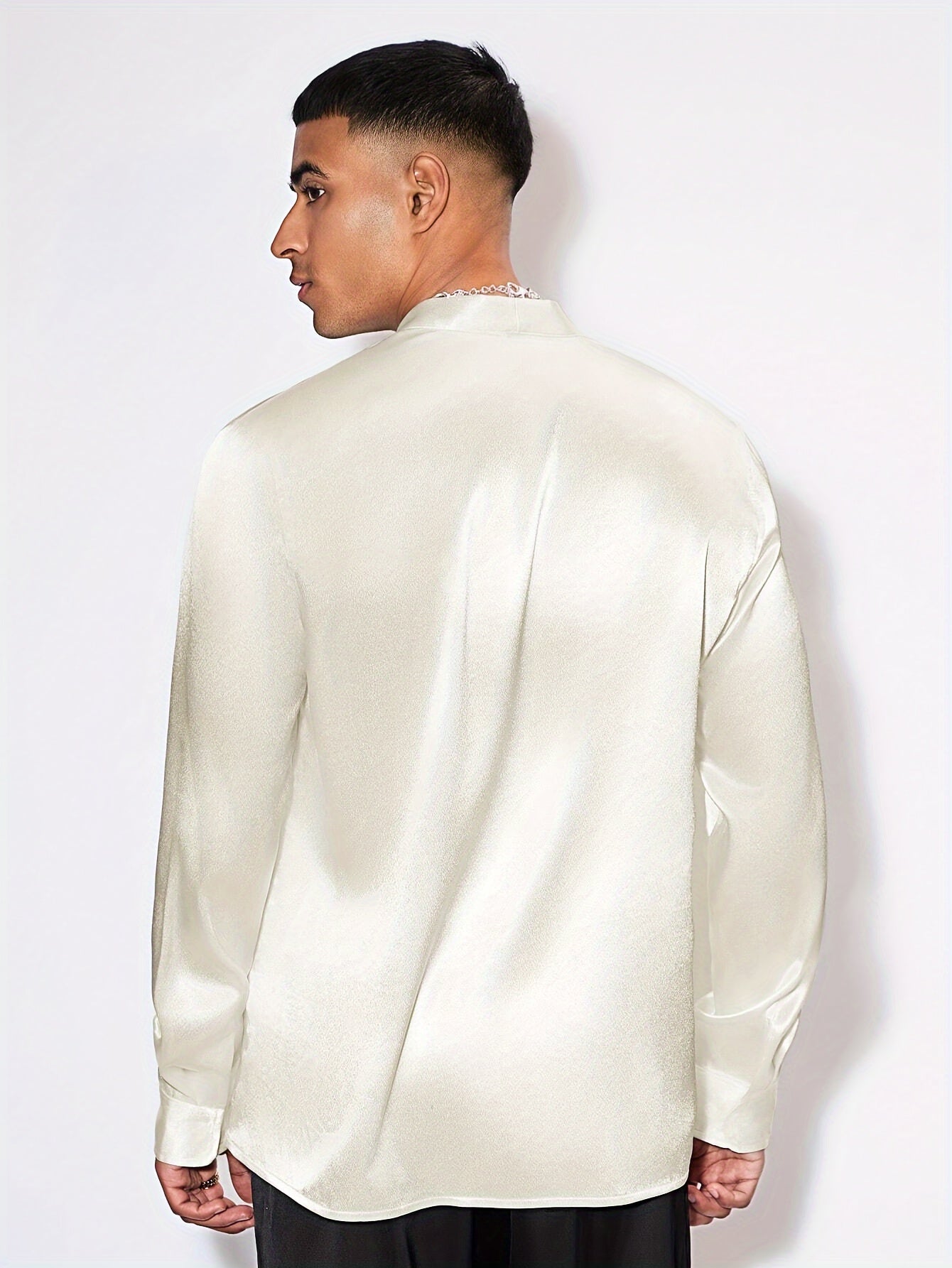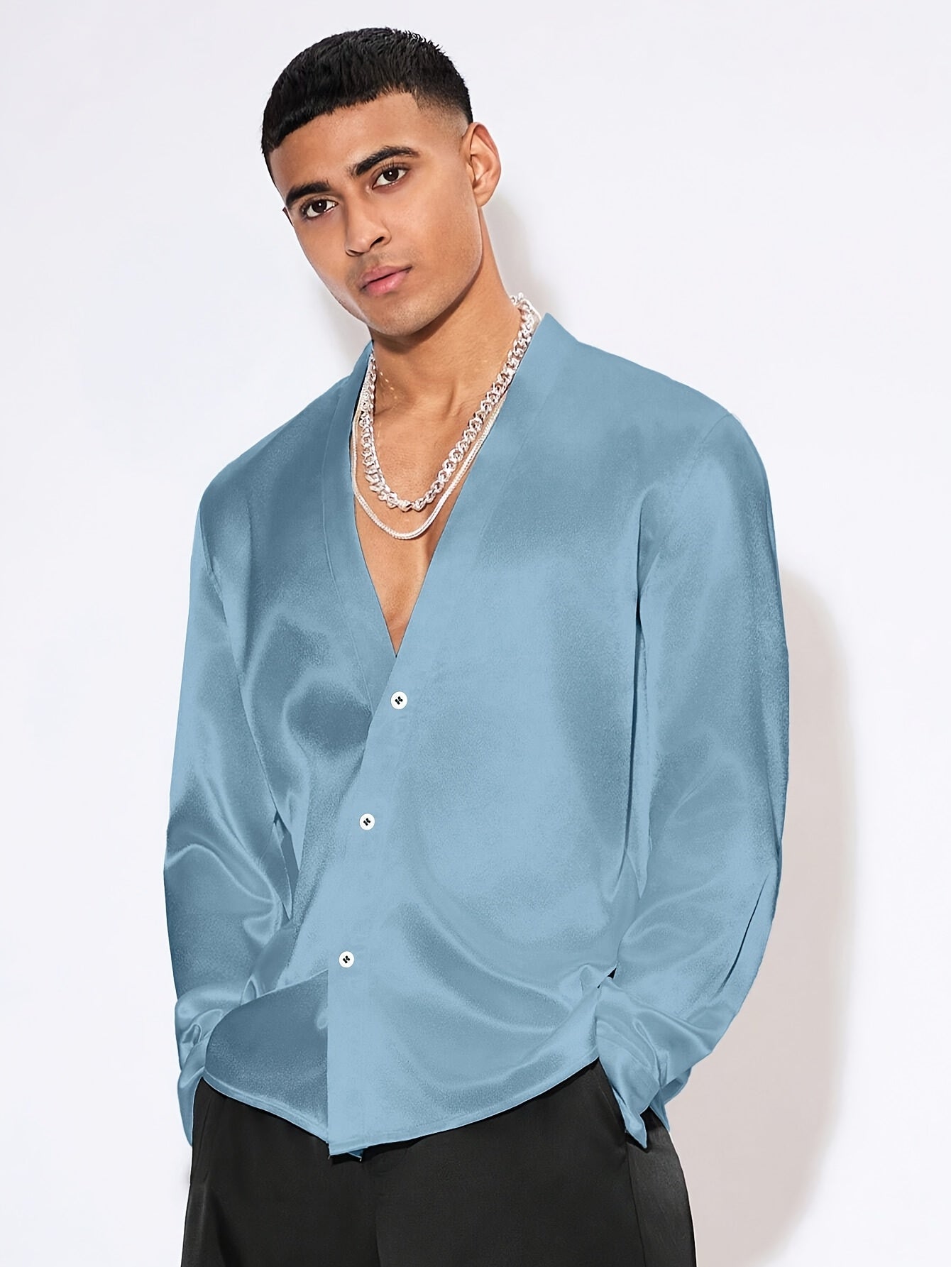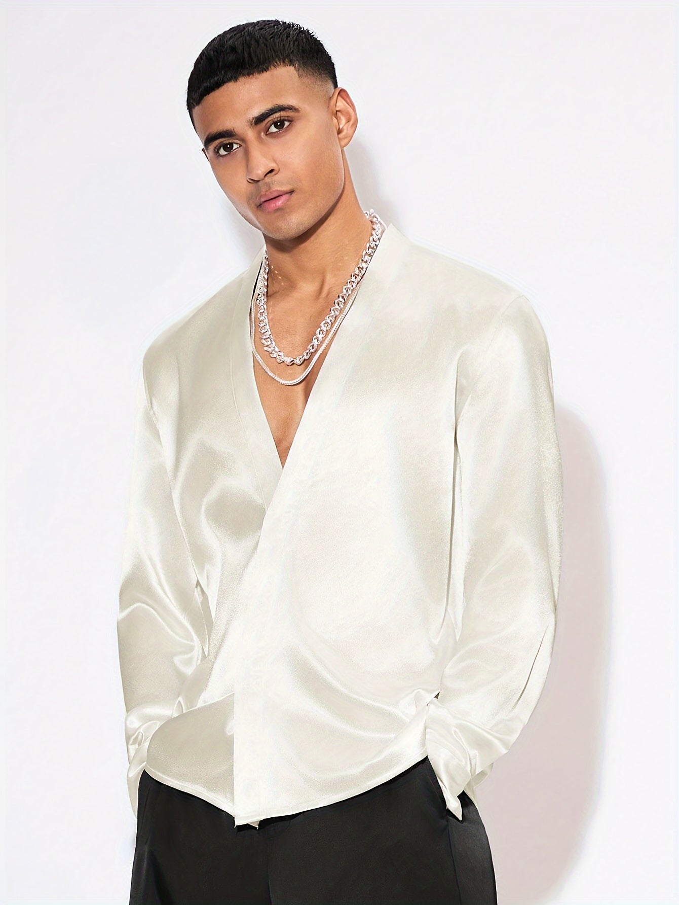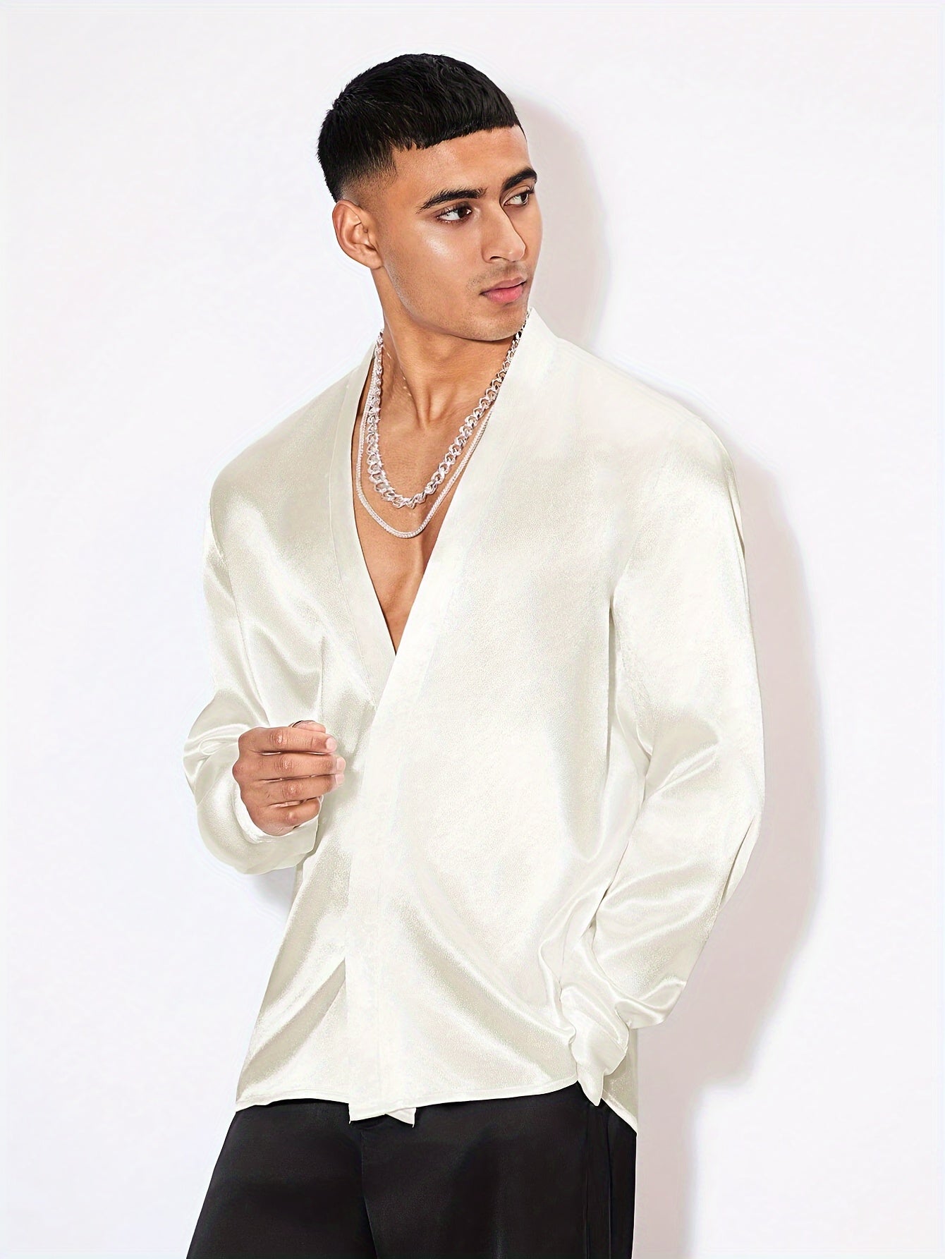 Edles Herren Satinhemd – Langarm, V-Ausschnitt, Perfekt für Events & Partys
