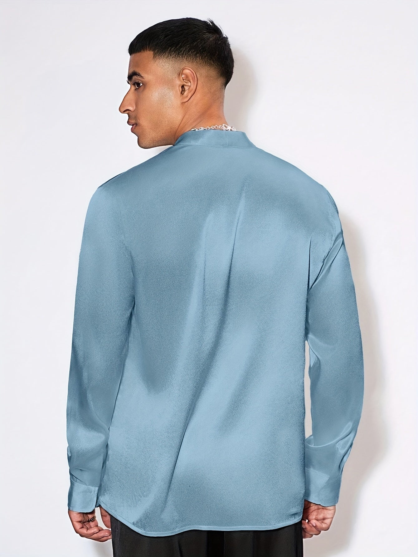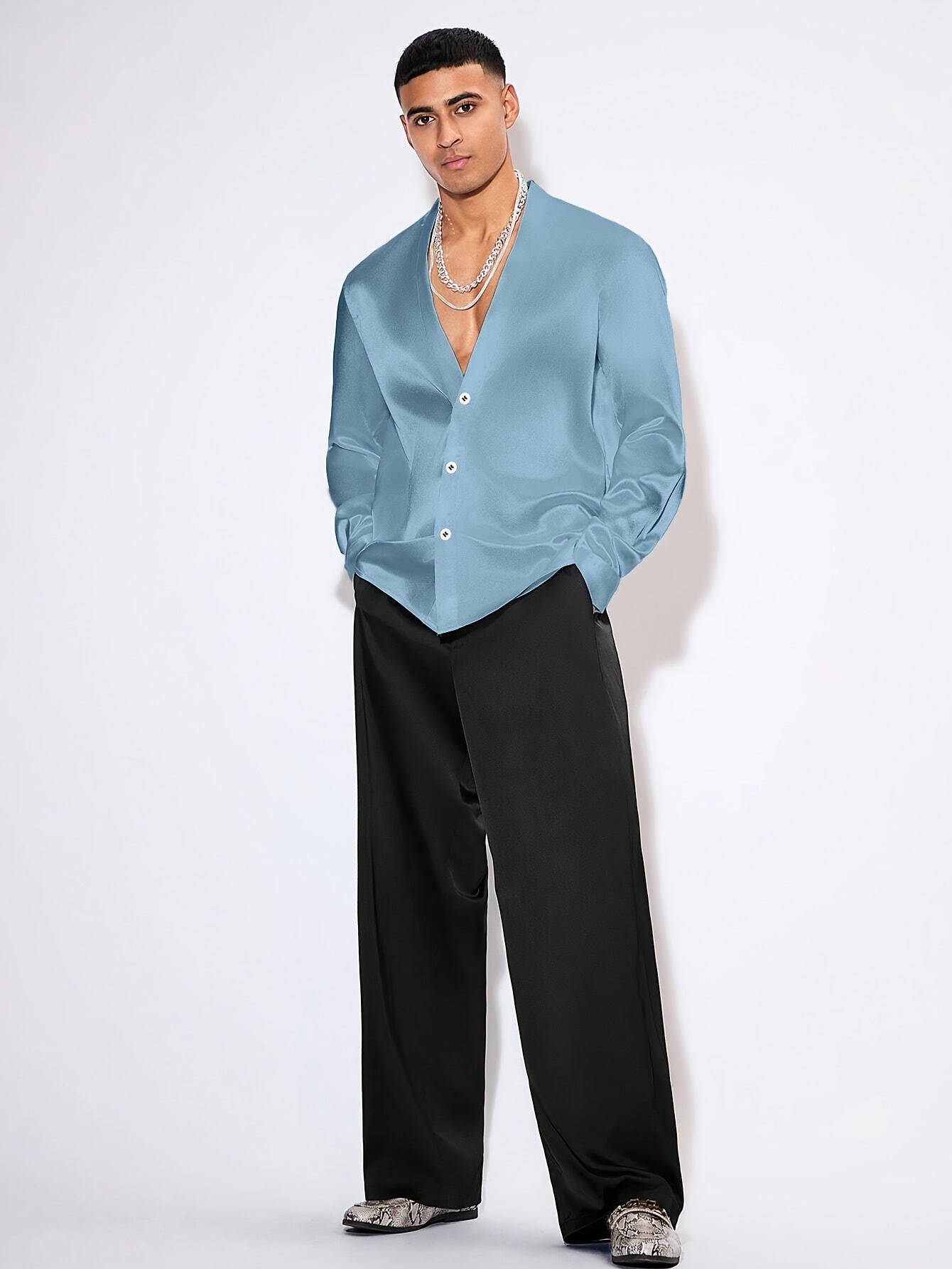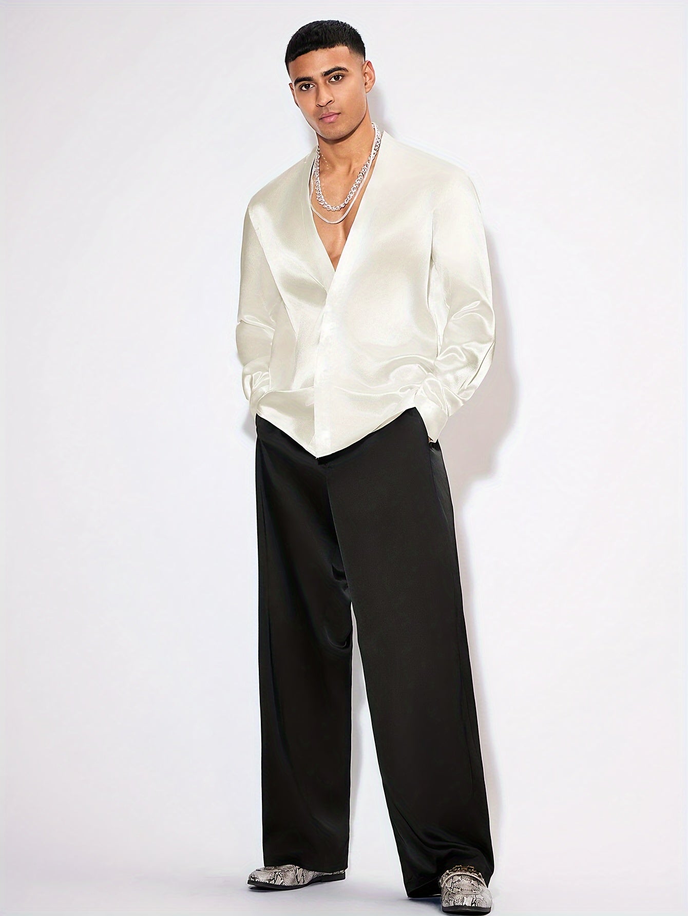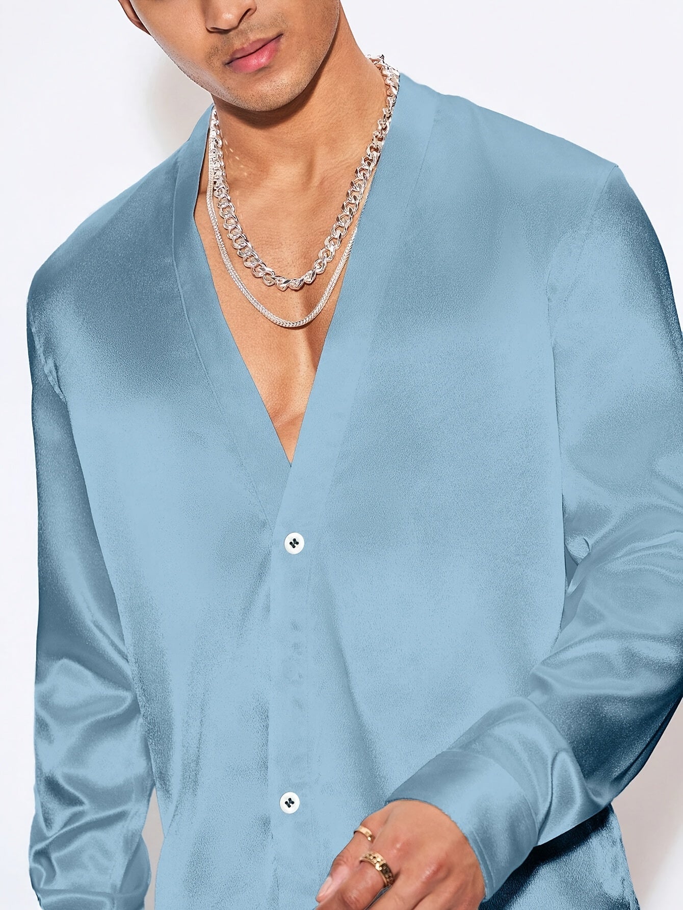 Edles Herren Satinhemd – Langarm, V-Ausschnitt, Perfekt für Events & Partys