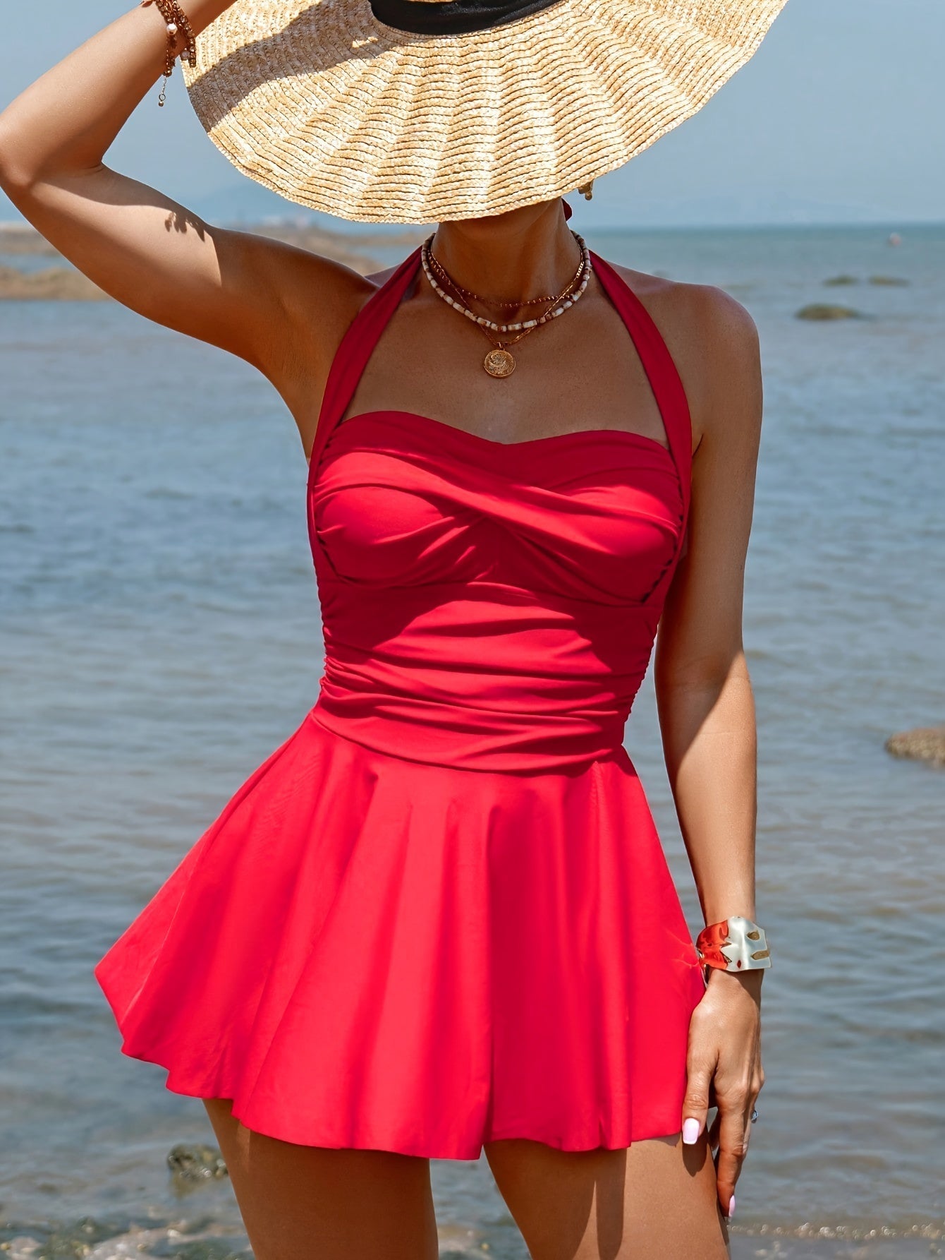 Dieser elegante Neckholder-Badeanzug kombiniert Stil und Komfort für einen schmeichelhaften Sommer-Look. Das hochdehnbare Material sorgt für eine perfekte Passform und angenehmen Tragekomfort, während das einfarbige Design zeitlose Eleganz ausstrahlt. Ideal für Strand, Pool oder entspannte Sommertage!