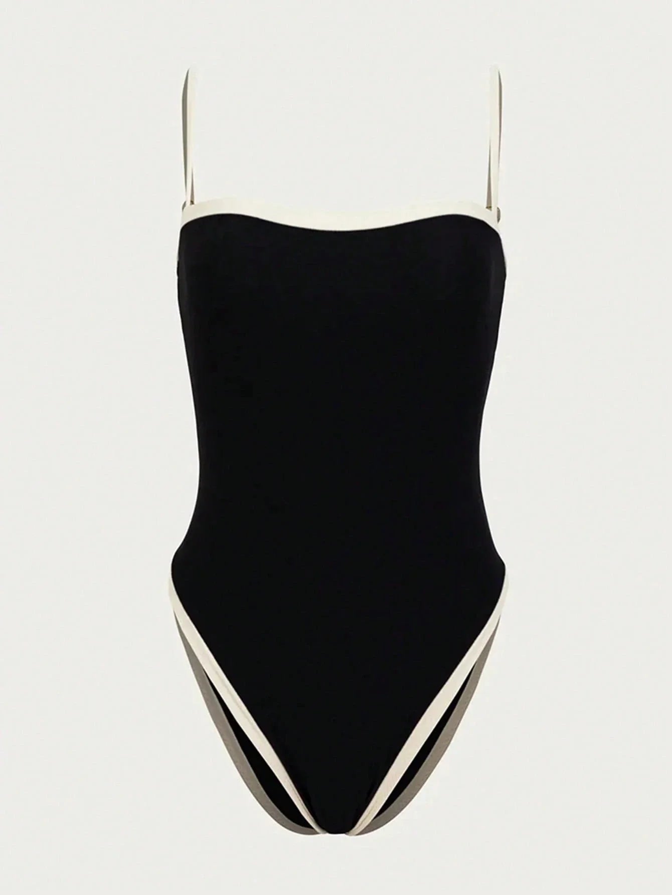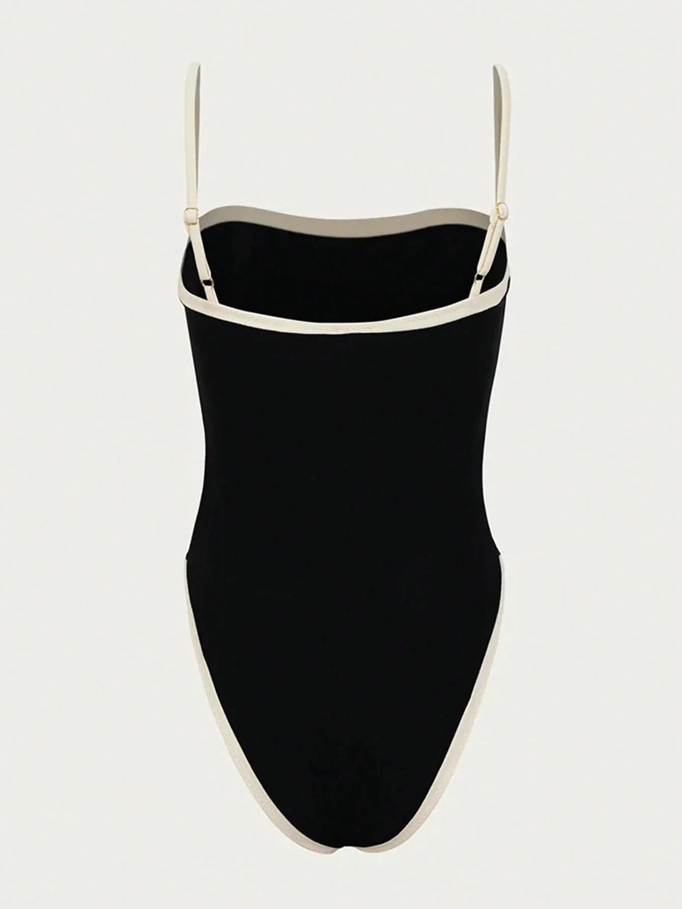 Eleganter Badeanzug mit Kontrastdetails – Zeitloses Schwarz für stilbewusste Frauen