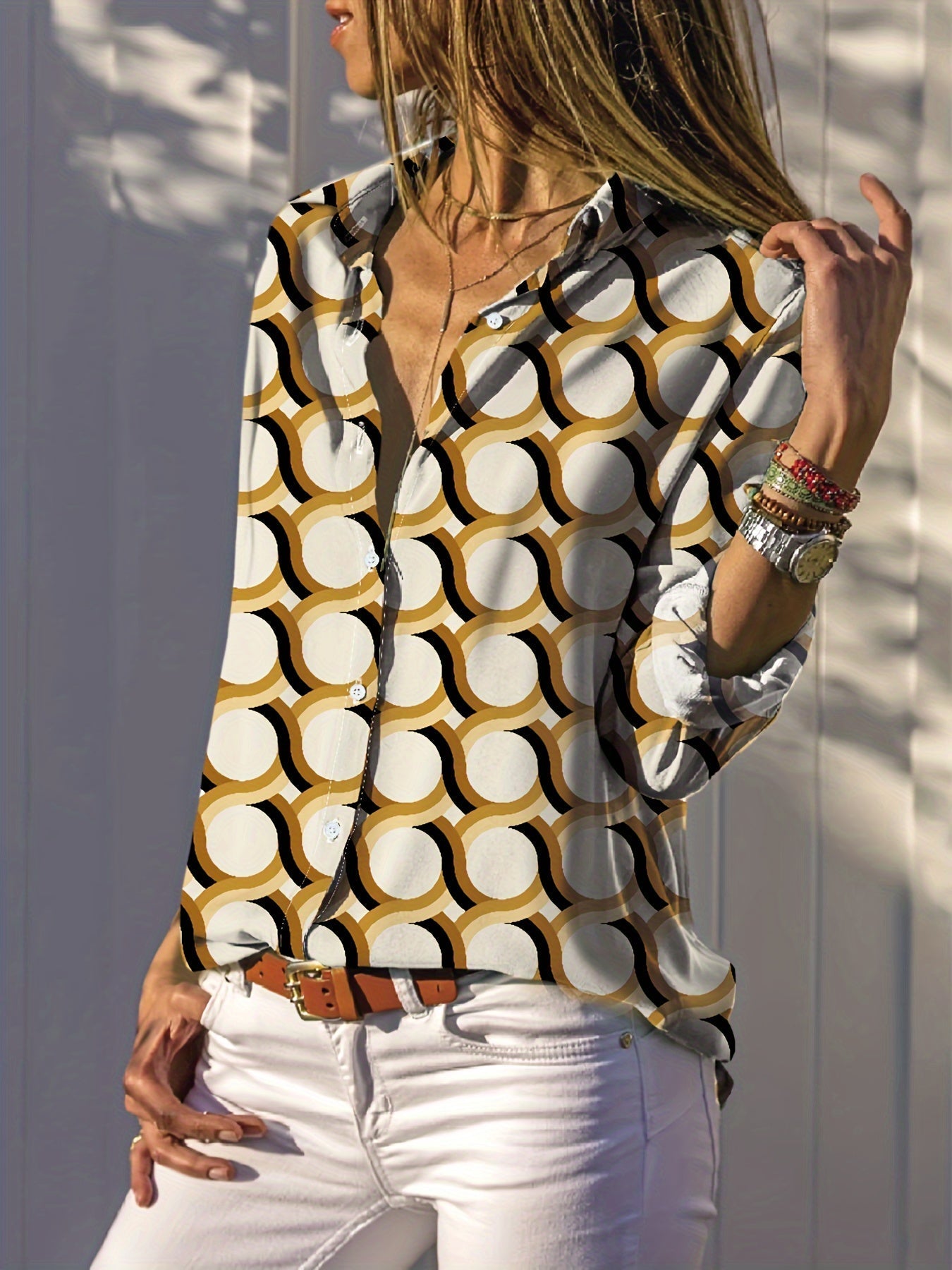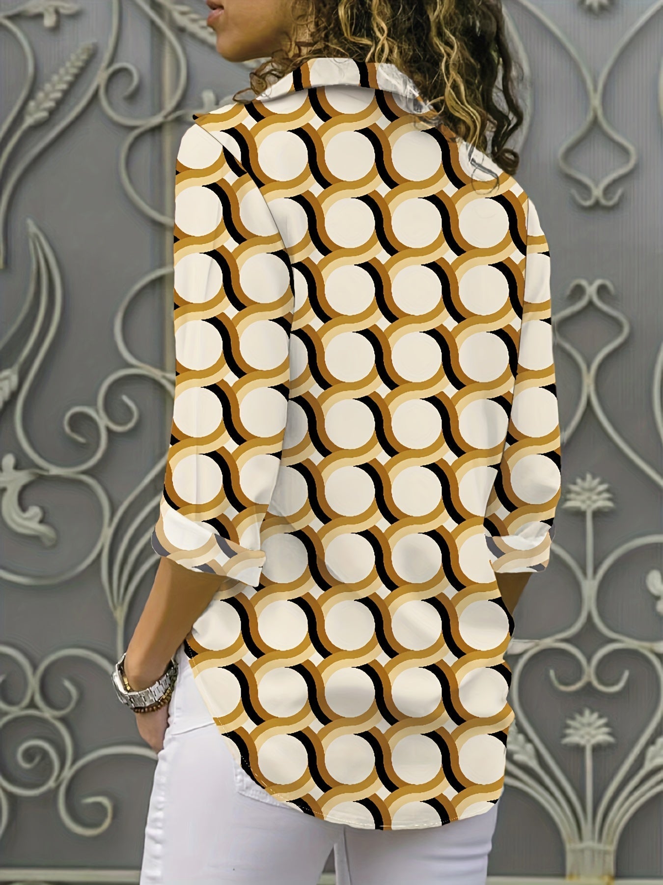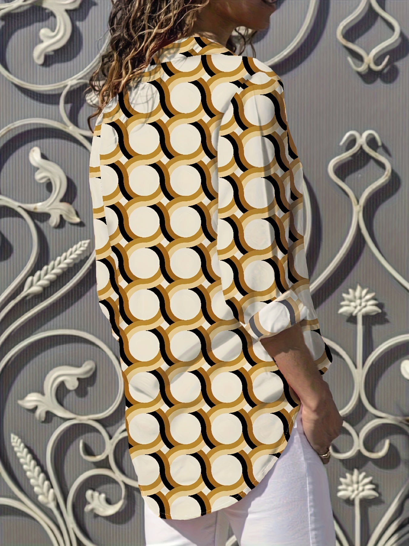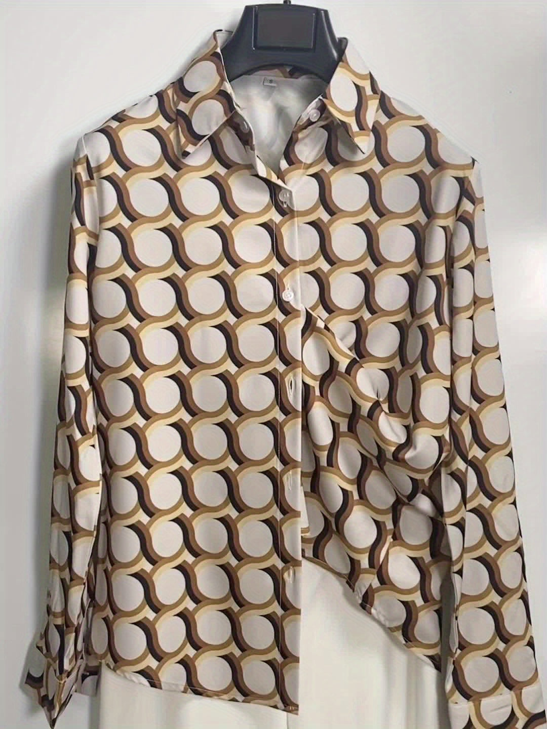 Elegantes Damen-Langarmhemd – Chiffonbluse mit Kettenmuster, Leicht & Vielseitig