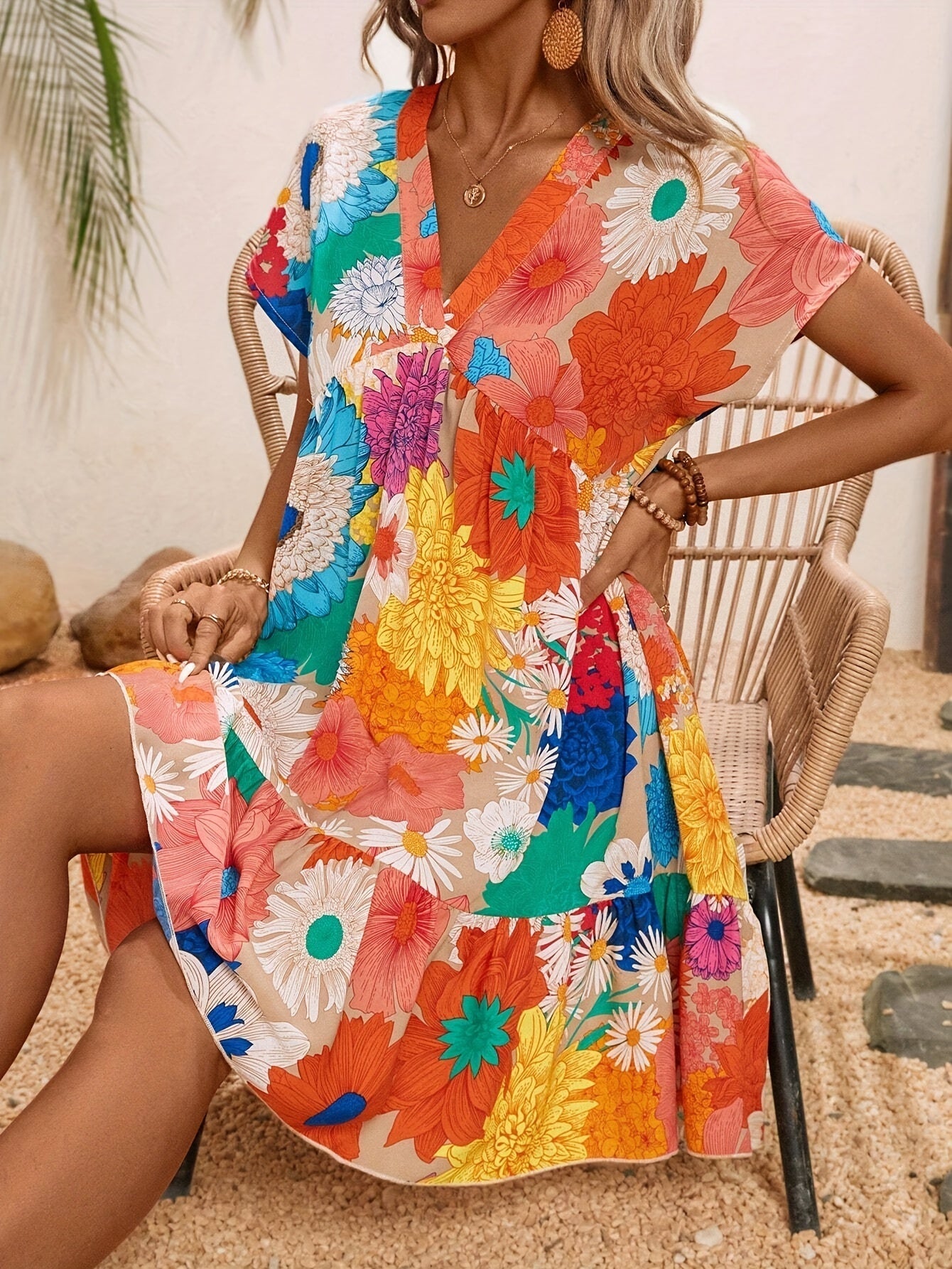 Elegantes V-Ausschnitt Sommerkleid Florales Druckdesign