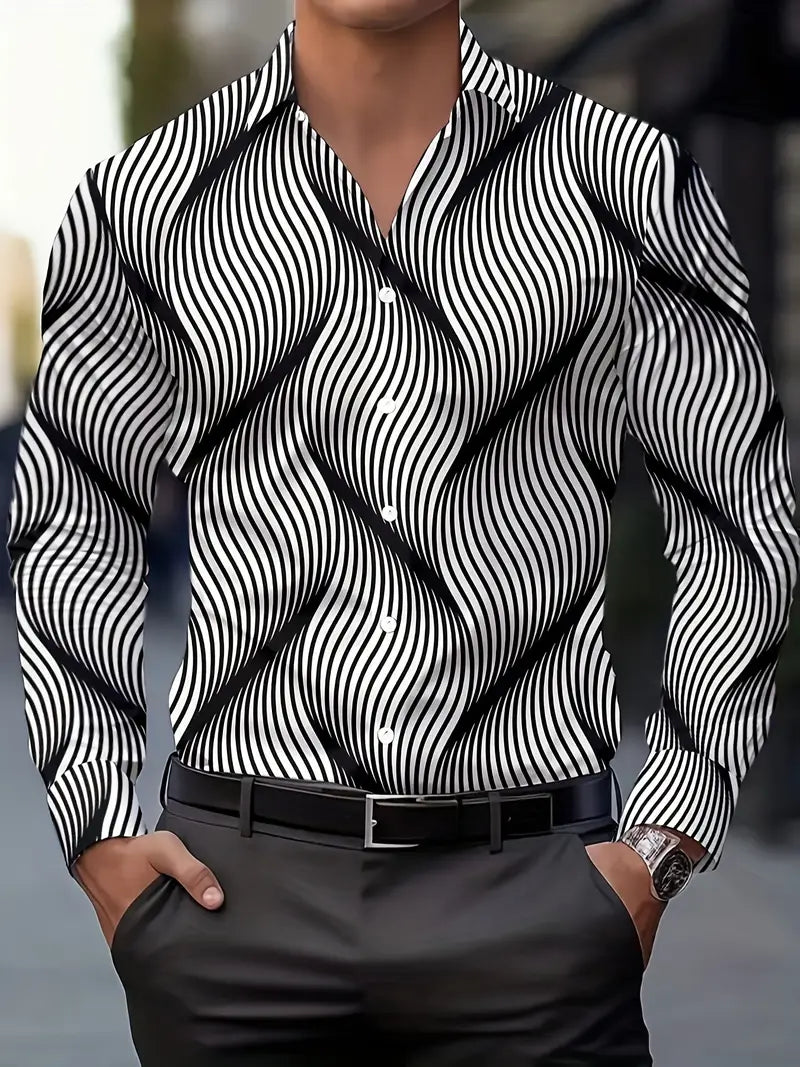 Mit unserem bedruckten Herrenhemd können Sie Ihr modisches Spiel aufpeppen. Dieses Button-Down-Hemd mit einem kunstvollen Druck und einem eleganten Umlegekragen kombiniert modernen Stil mit einem Hauch von Persönlichkeit. Die langen Ärmel bieten Vielseitigkeit, so dass Sie es das ganze Jahr über tragen können - perfekt für warme Tage und kühlere Abende.