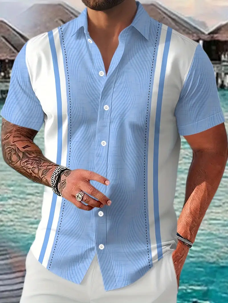 Peppen Sie Ihre Freizeitgarderobe mit unserem gestreiften Kurzarmhemd auf - die perfekte Mischung aus Komfort und Stil. Dieses Hemd aus leichtem, atmungsaktivem Material hält Sie kühl und entspannt und bietet gleichzeitig einen eleganten, modernen Look. Das klassische Streifenmuster verleiht jedem Outfit einen Hauch von Raffinesse und macht es zu einem unverzichtbaren Teil für legere und semi-casuale Anlässe.