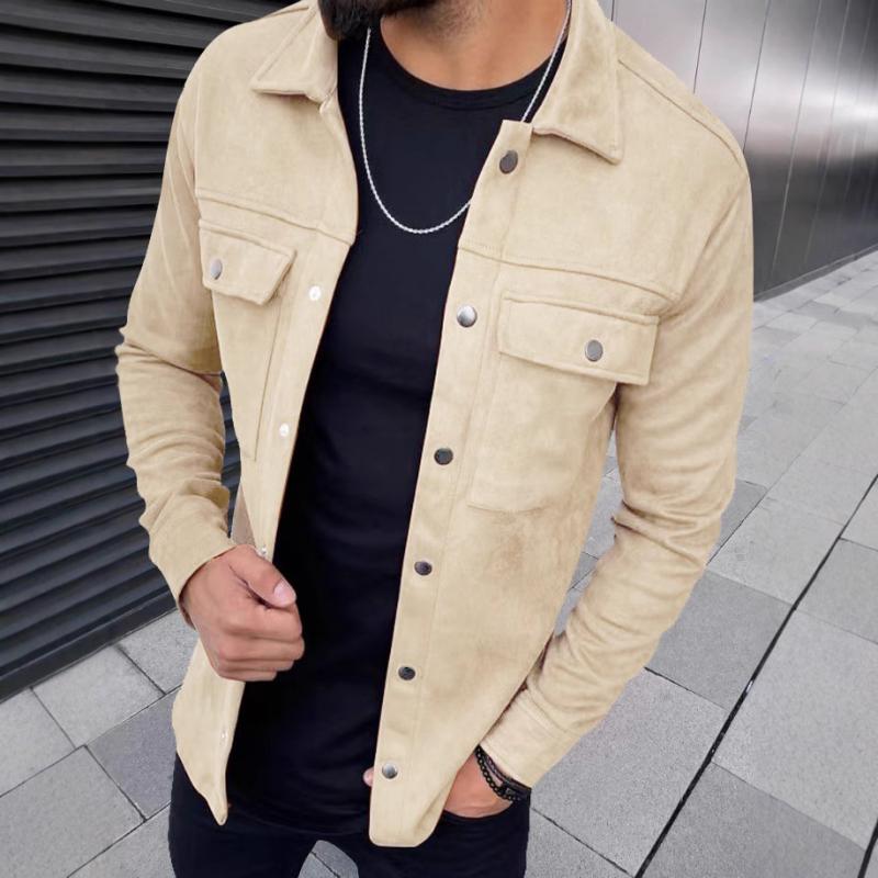 Verleihen Sie Ihrem Outfit eine stilvolle Note mit dieser geknöpften Jacke. Ihr zeitloses Design mit klassischem Reverskragen und einreihigem Schnitt verbindet Eleganz mit Funktionalität. Perfekt für Herren, die bei jedem Anlass Wert auf Stil und Komfort legen.