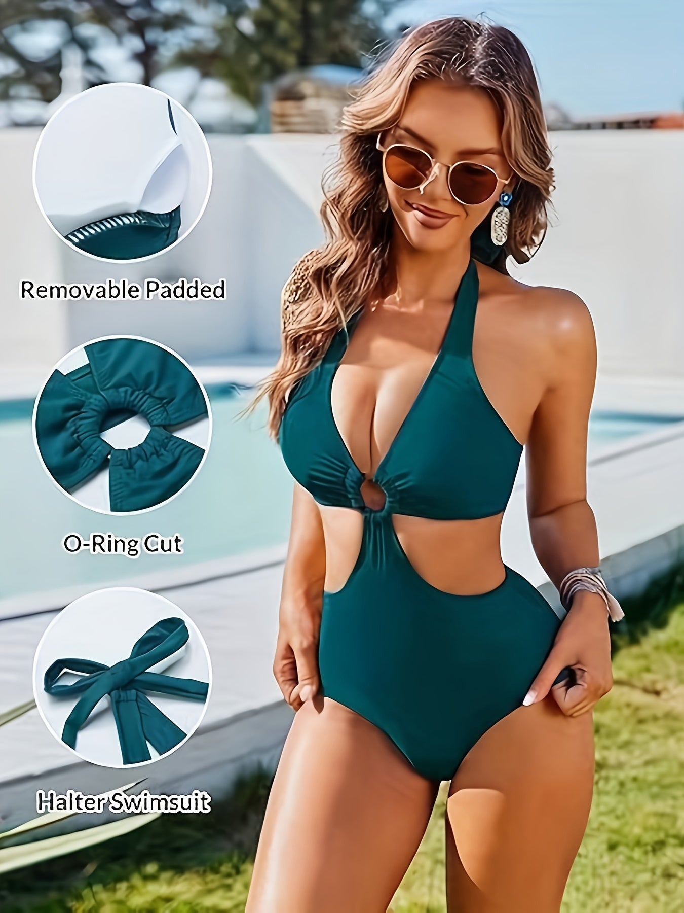 Halterneck-Badeanzug – Rückenfreier, Schlankmachender Einteiler mit Ausschnitt-Detail