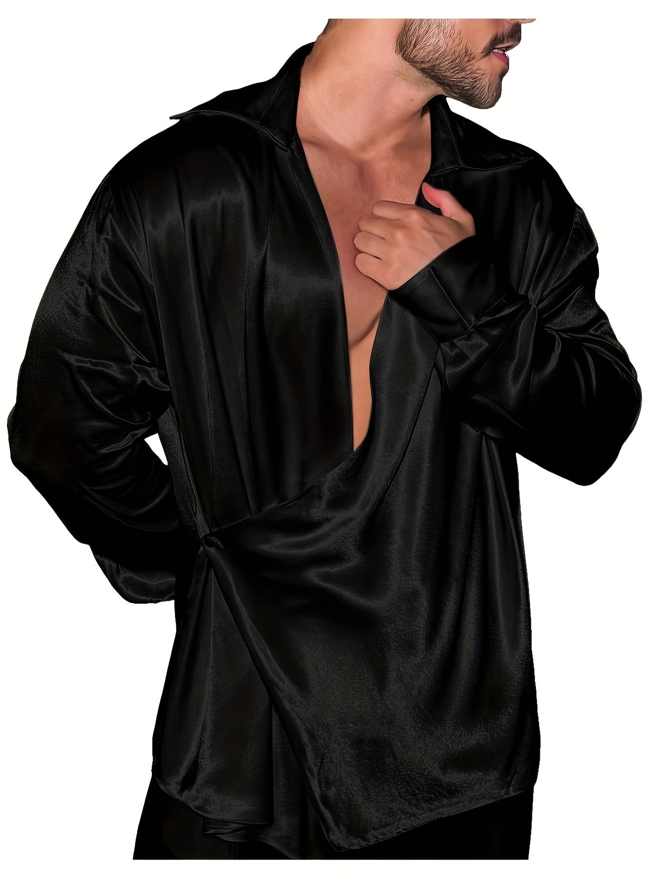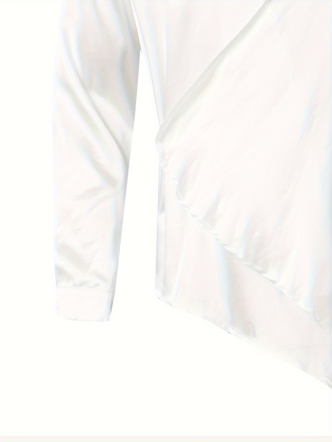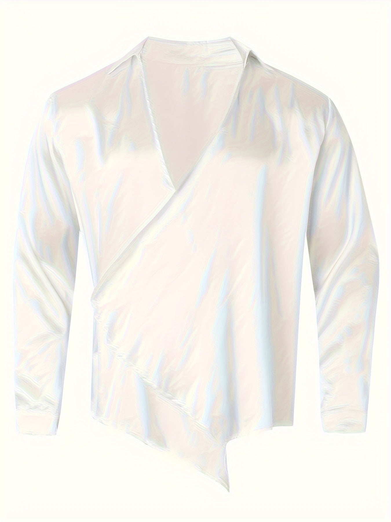 Herren Elegantes Langarmhemd – Asymmetrischer V-Ausschnitt, Nicht dehnbarer Stoff