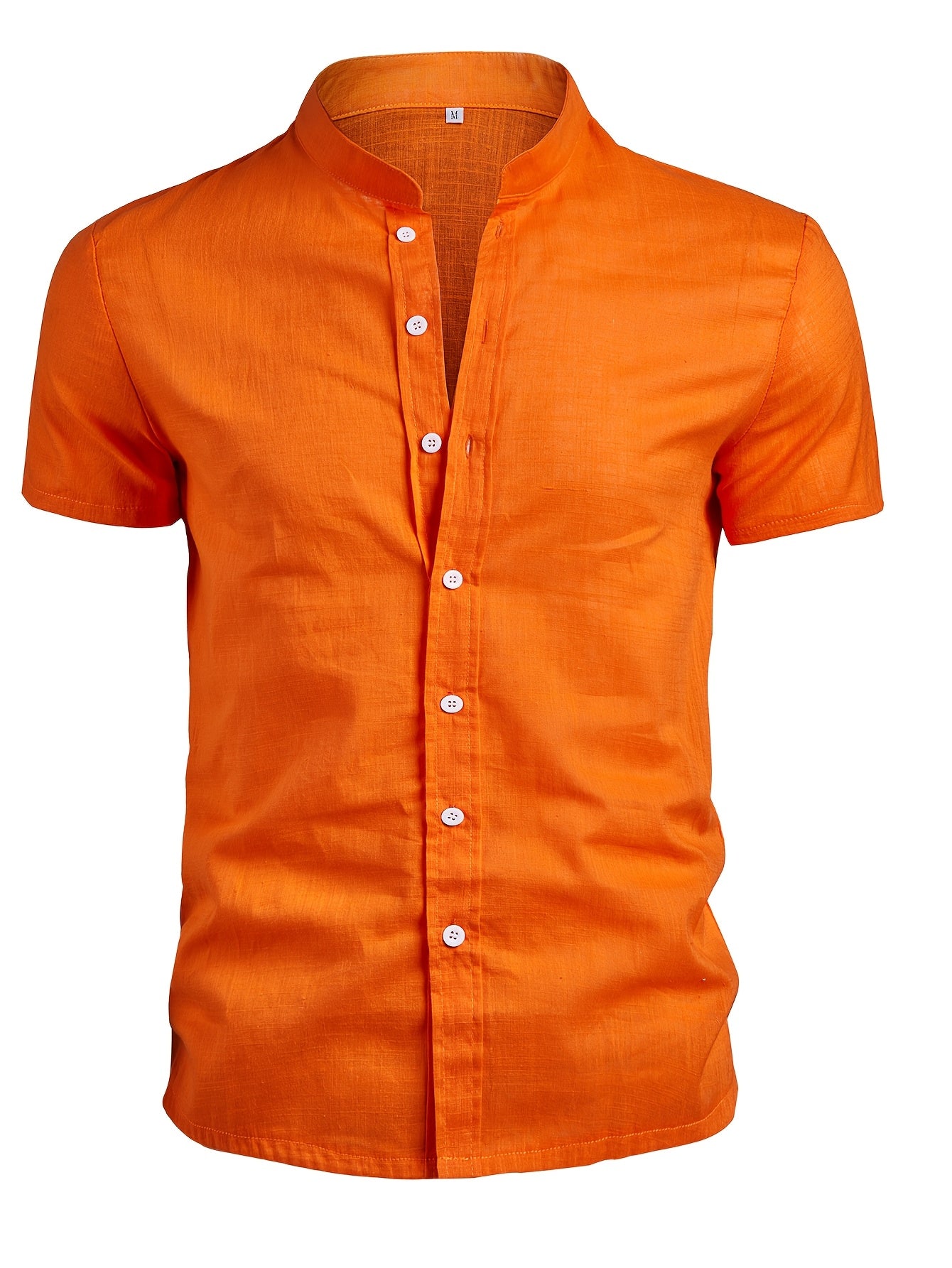 Herren Kurzarm Leinenhemd – Atmungsaktiv, Stehkragen, Einfarbig & Pflegeleicht