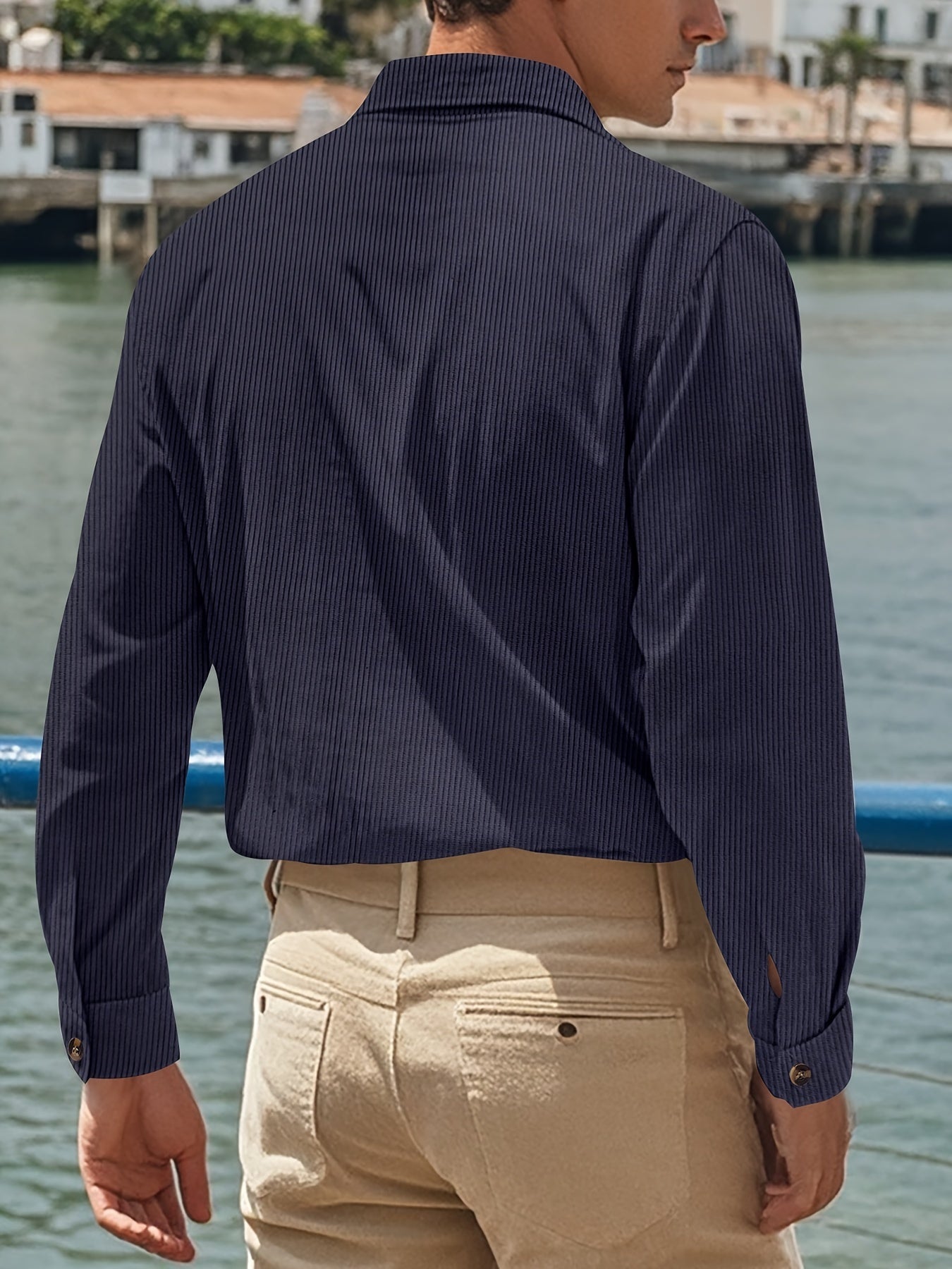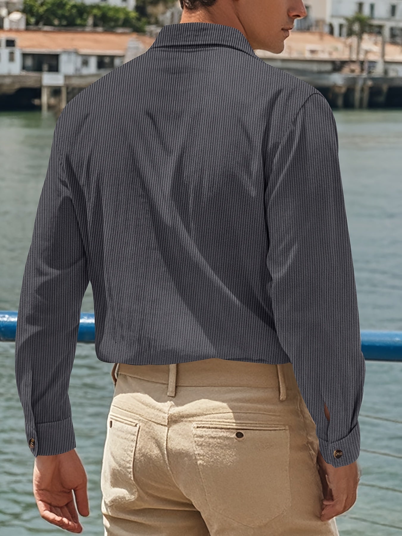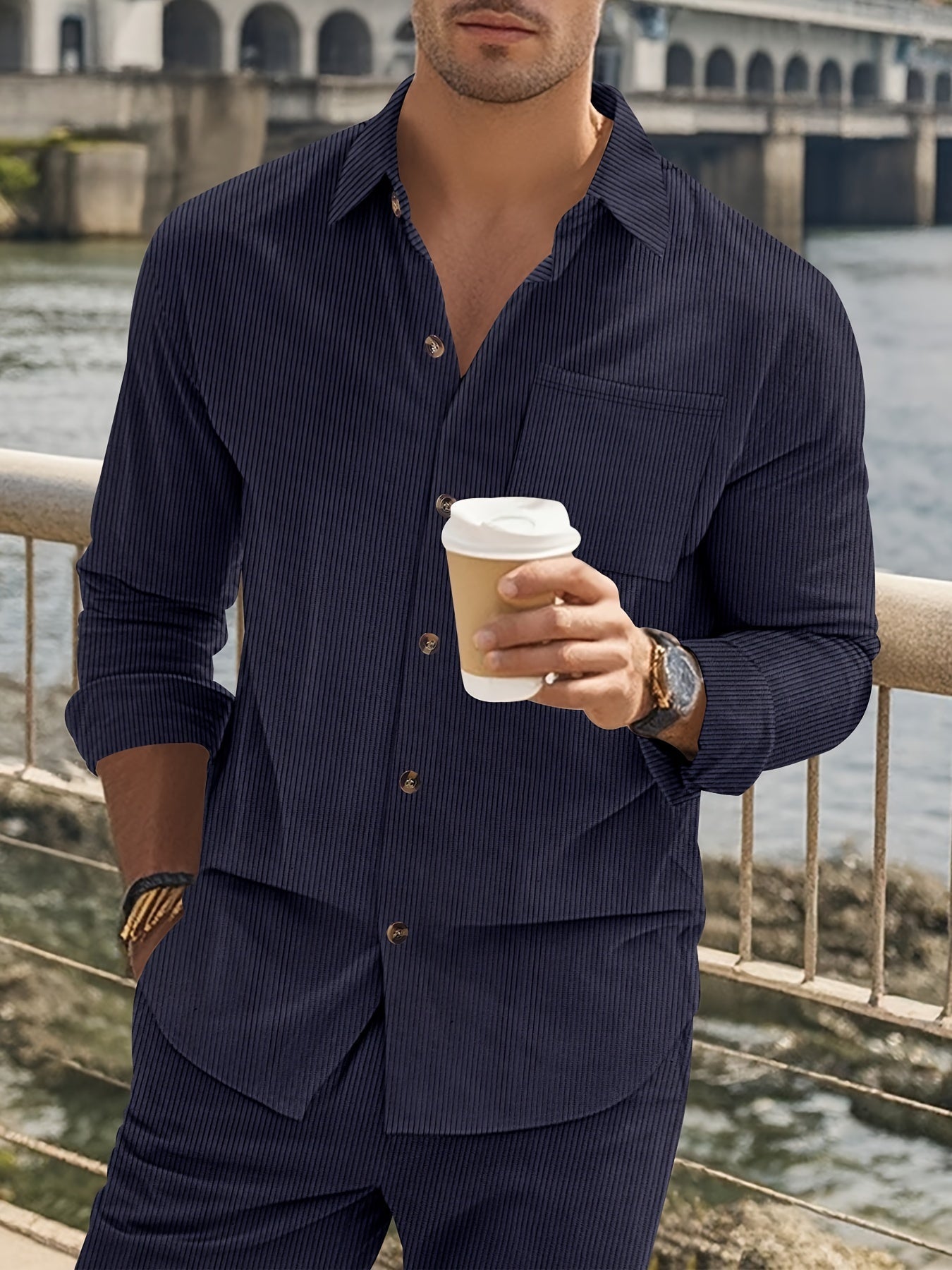 Herren Langarm Cordhemd – Einfarbig, Weicher Baumwollmix, Lässig & Bequem mit Brusttasche