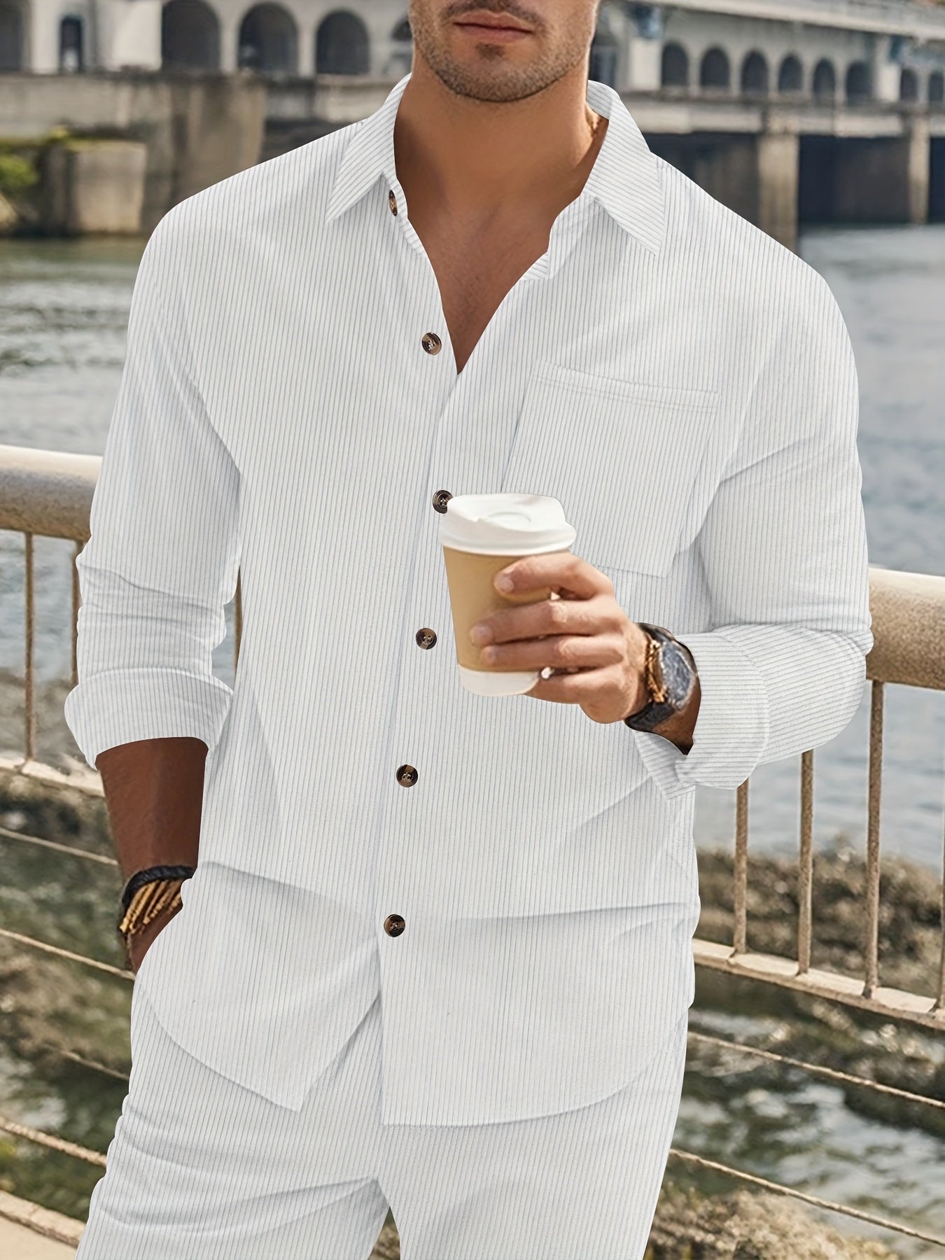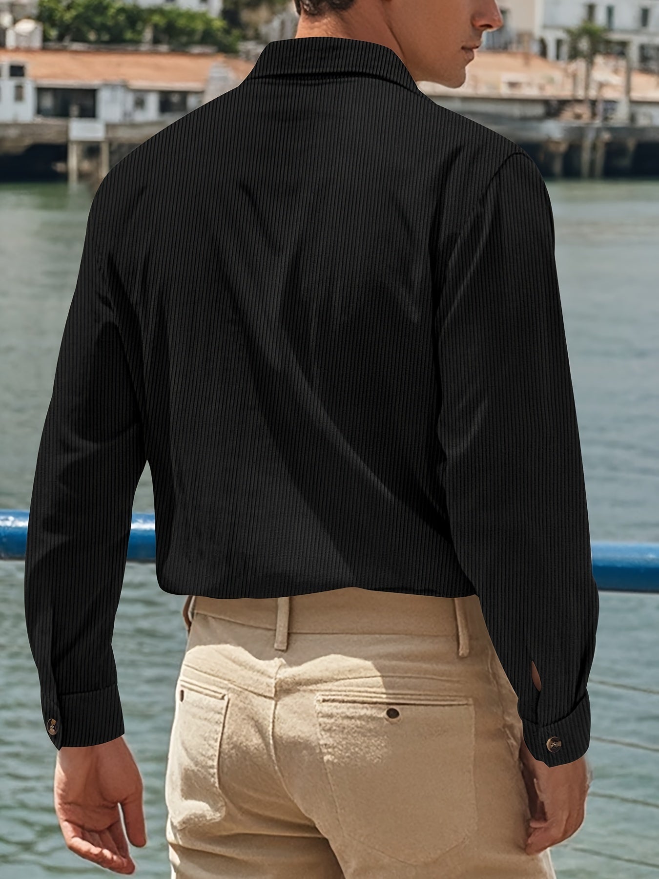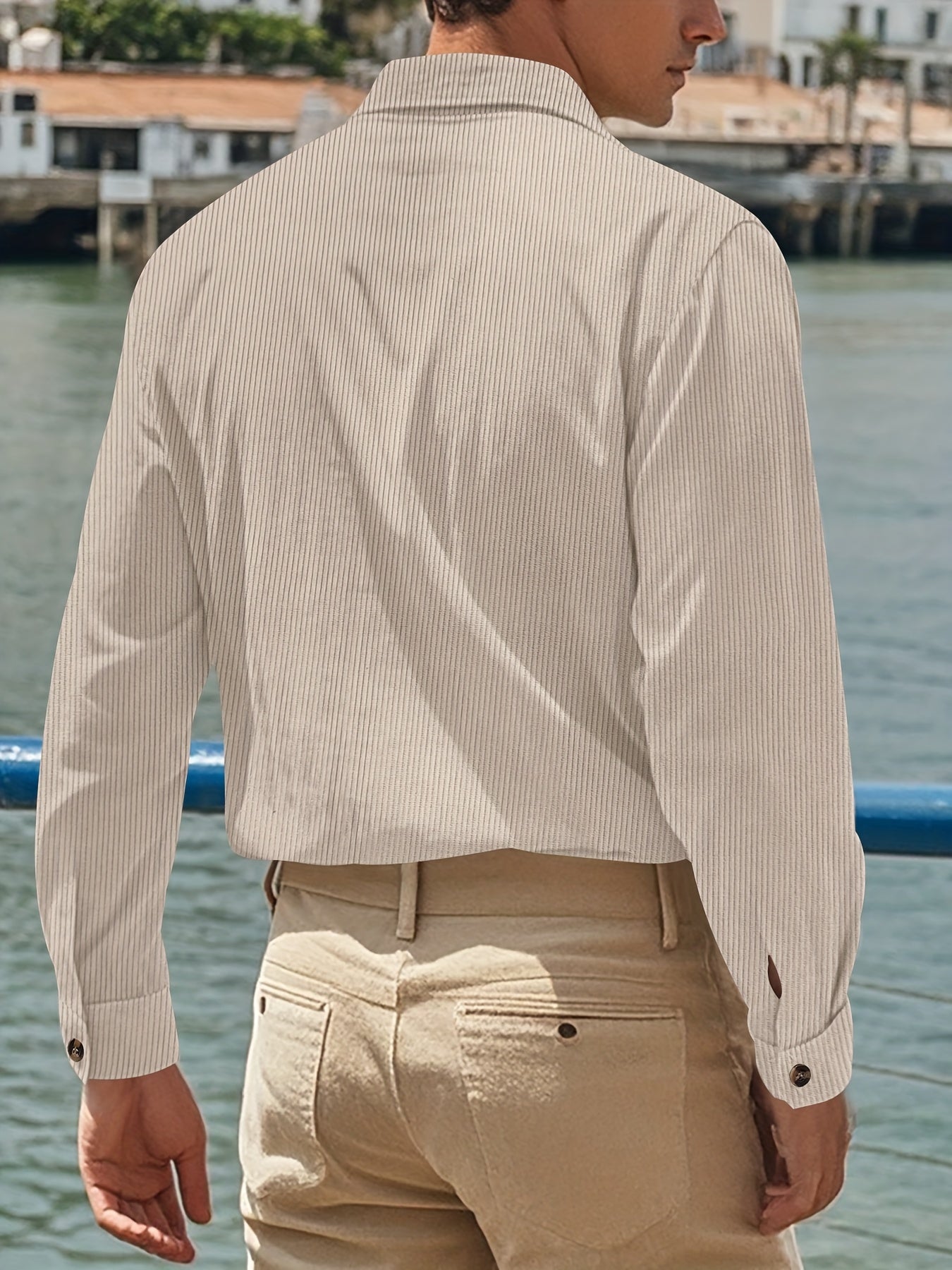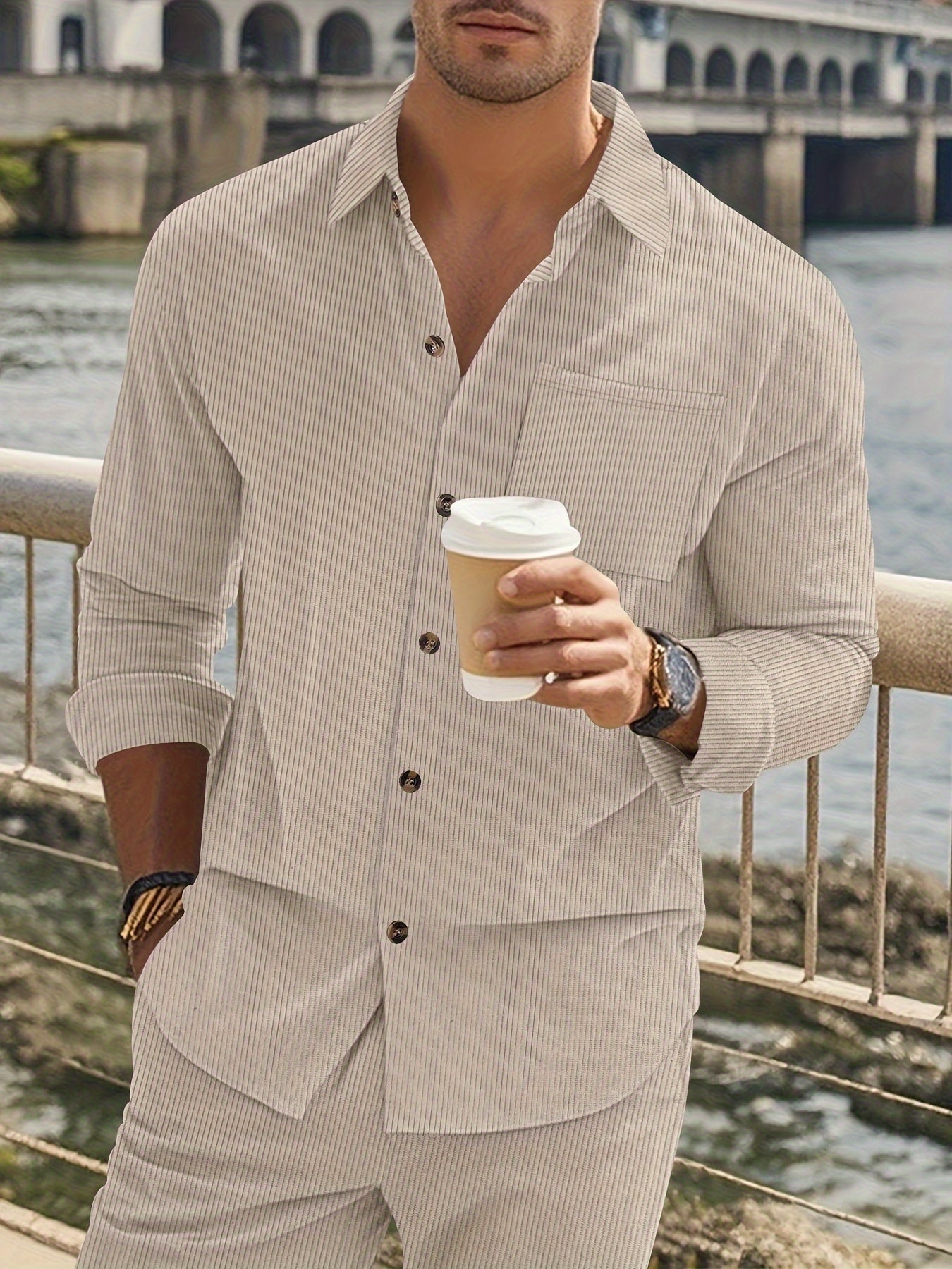 Herren Langarm Cordhemd – Einfarbig, Weicher Baumwollmix, Lässig & Bequem mit Brusttasche