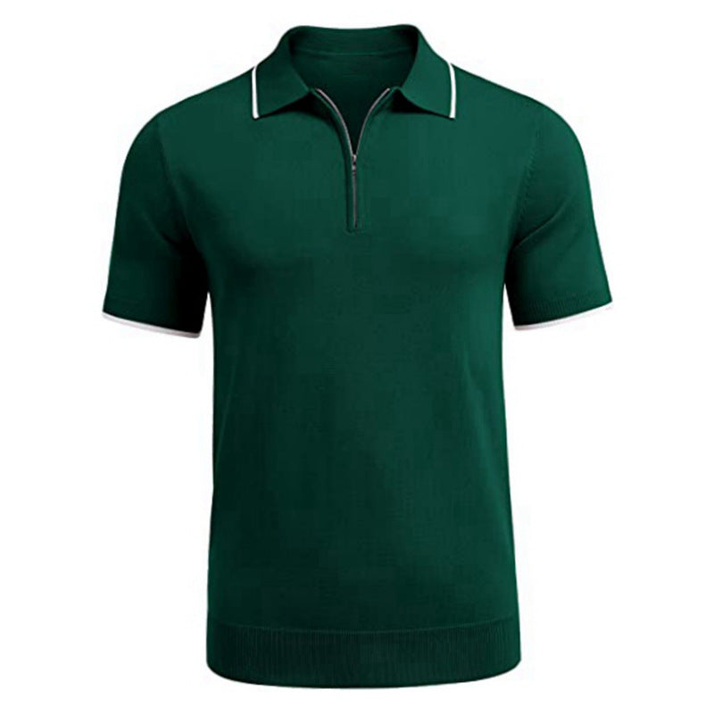 Herren modernes Kurzarm-Polo mit feinem Reißverschluss Aliams