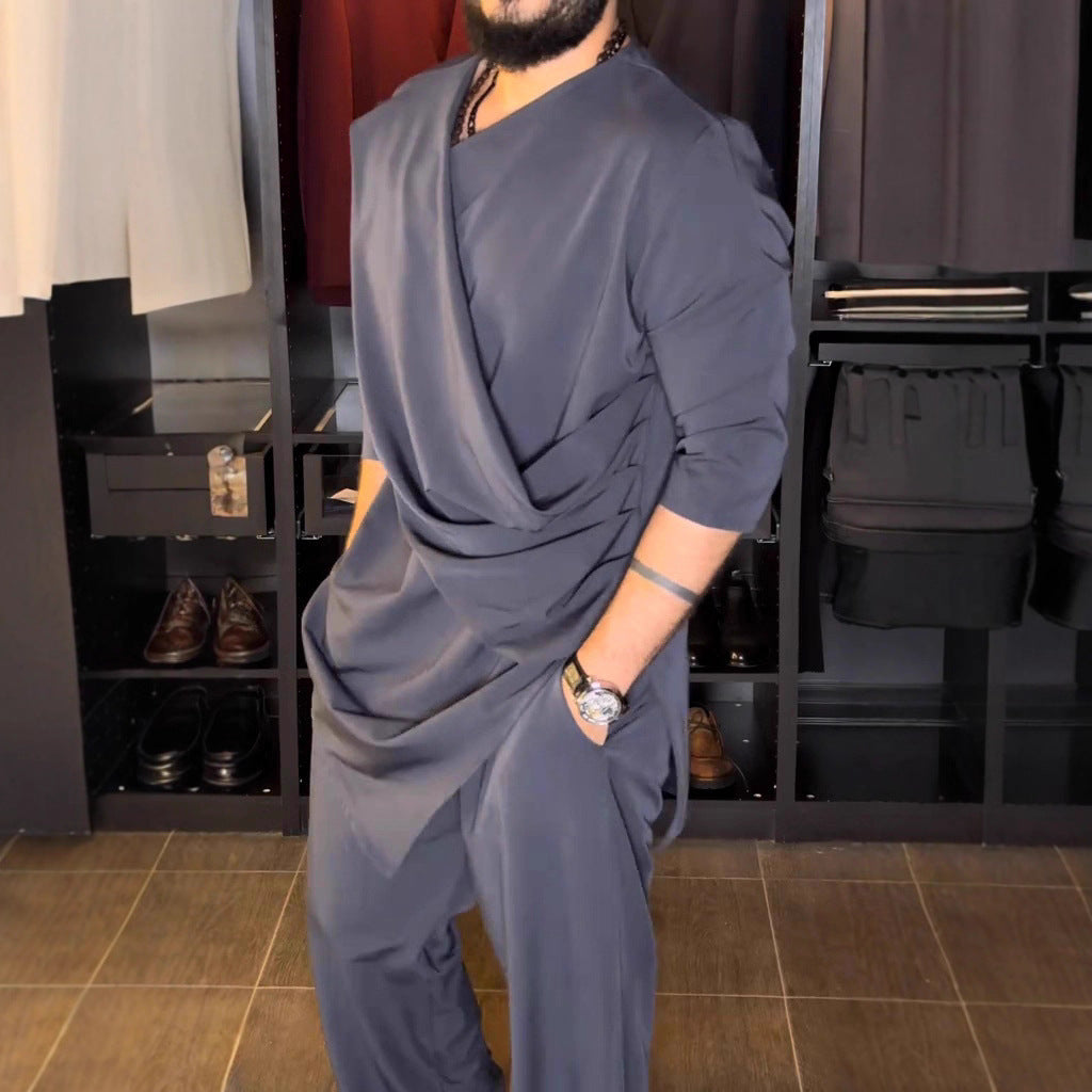 Diese Herren Wickelbluse zeichnet sich durch ihr modernes Design und die außergewöhnliche Drapierung aus. Sie vereint Eleganz und Lässigkeit und eignet sich perfekt für verschiedene Anlässe.