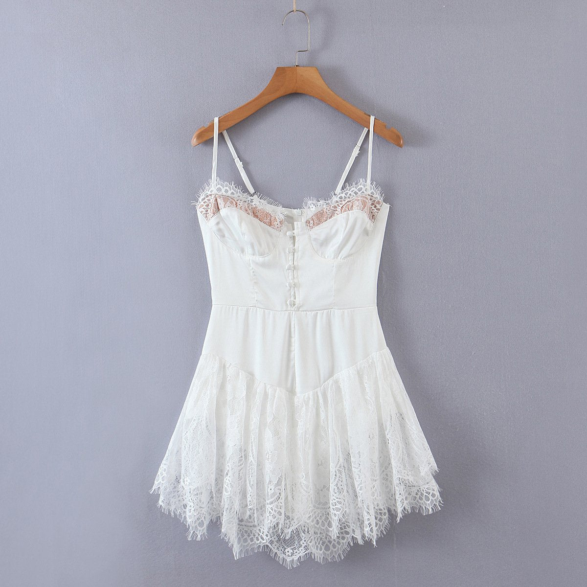 Die schmale Passform betont die Figur, während die dünnen Träger und die Spitze einen eleganten und sinnlichen Touch verleihen.