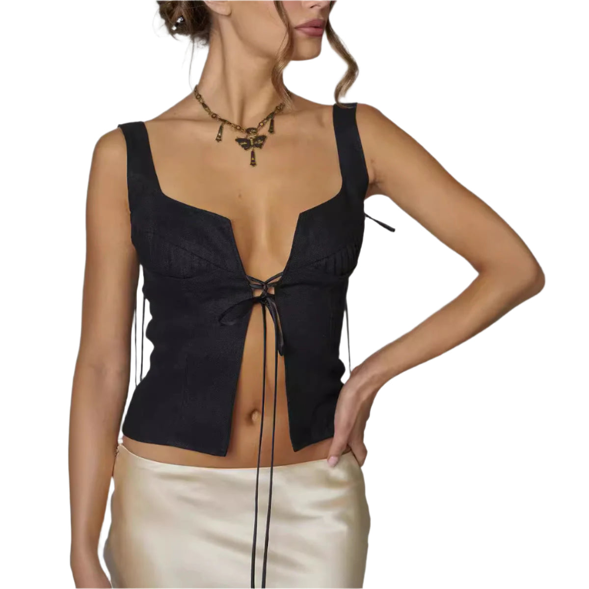 • Einzigartige Schnürung vorne: Verstellbare Schnürung, die die Taille betont.