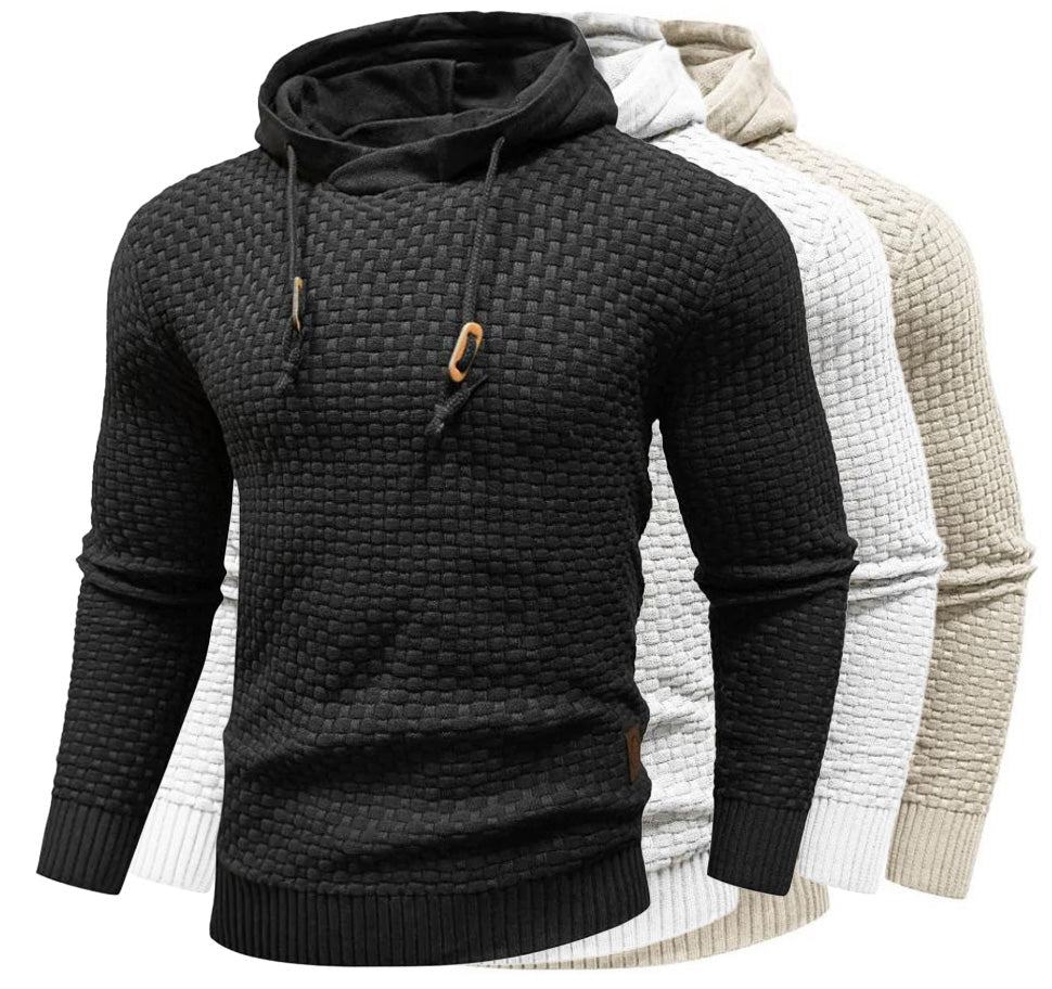 Ein moderner Kapuzenpullover mit strukturiertem Design, der Komfort und Stil miteinander verbindet. Das weiche Material sorgt für ein angenehmes Tragegefühl, während die verstellbare Kapuze zusätzlichen Schutz an kühleren Tagen bietet.