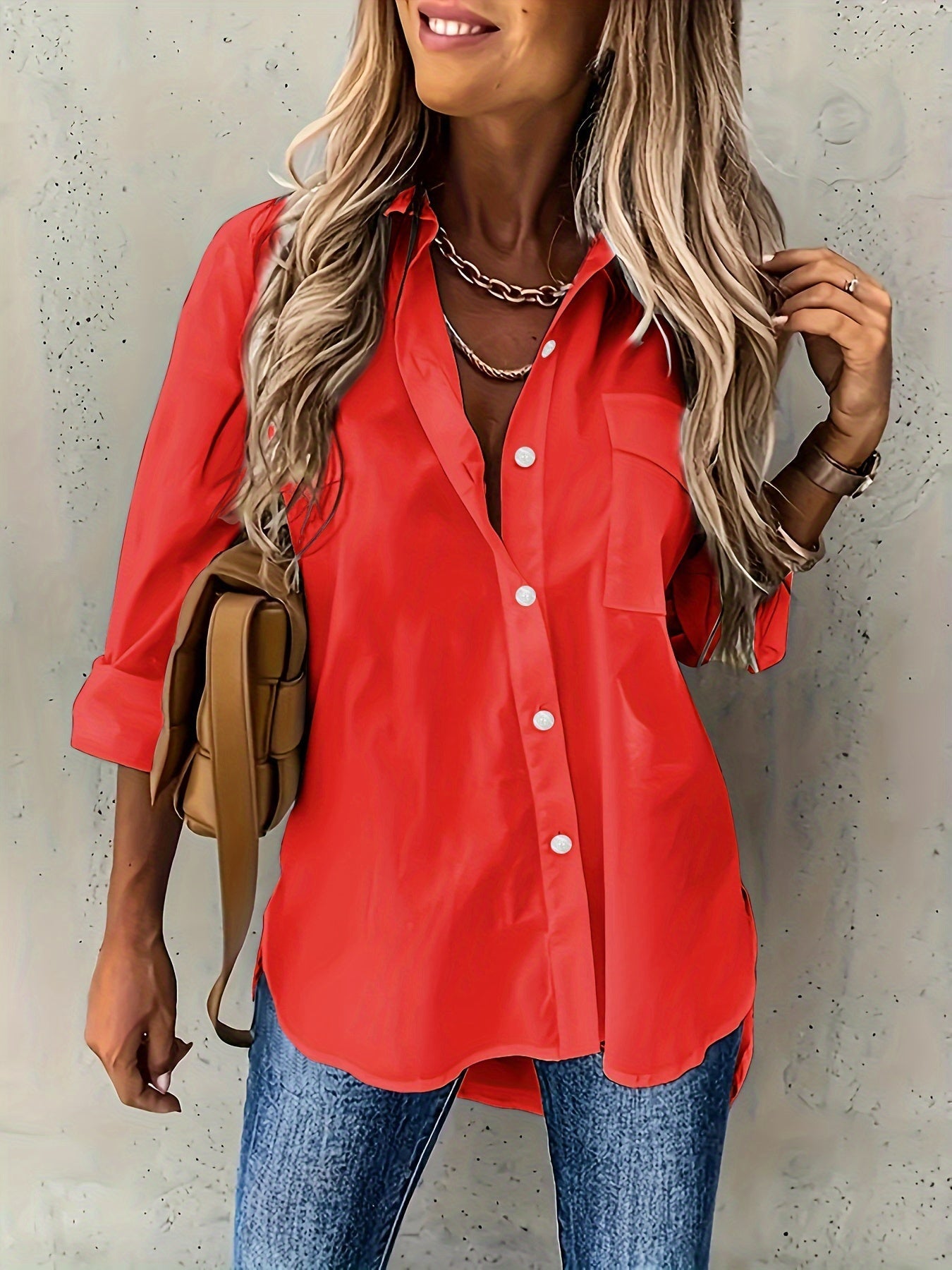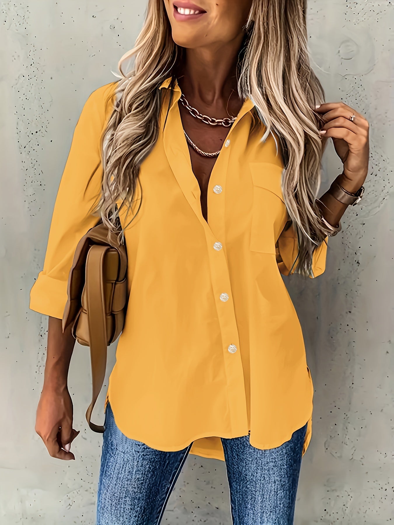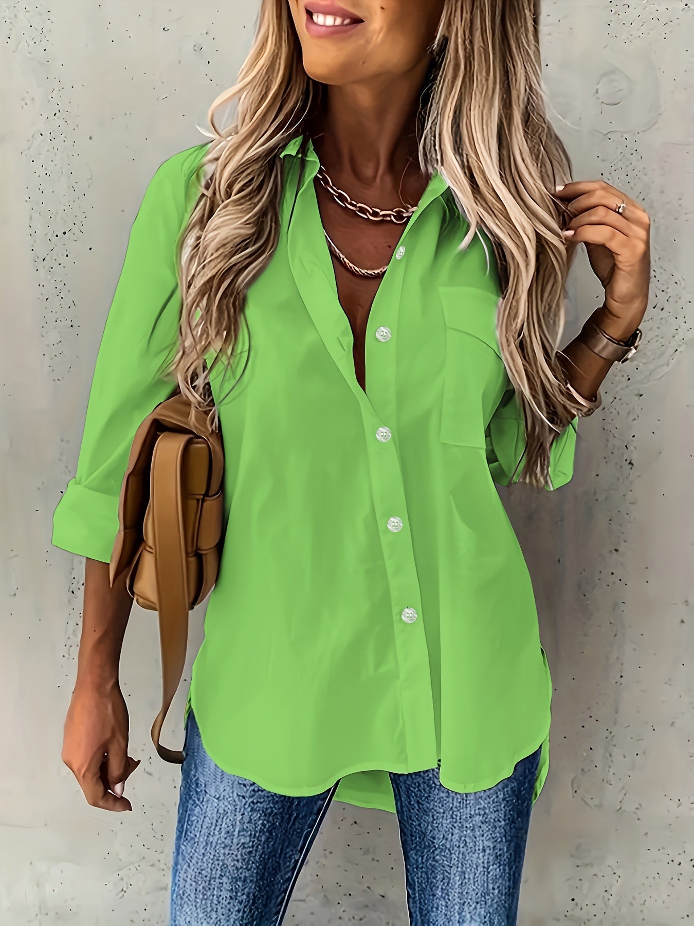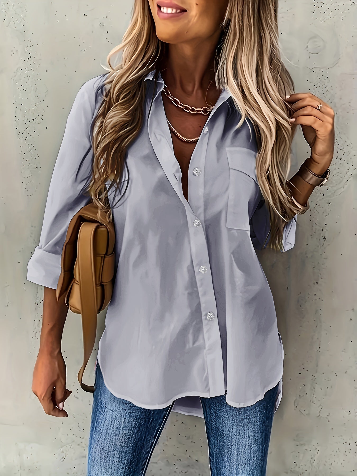 Langarm Hemd, Schlichter Hemd mit Knopfleiste Lässig