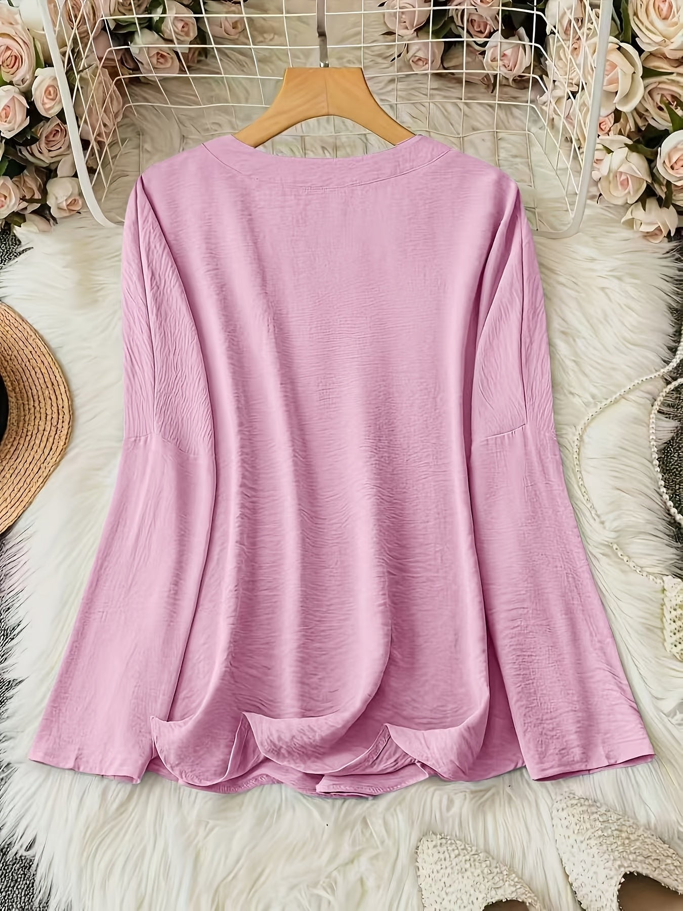 Lässige Bluse mit langen Ärmeln und gekerbtem Ausschnitt für Frauen