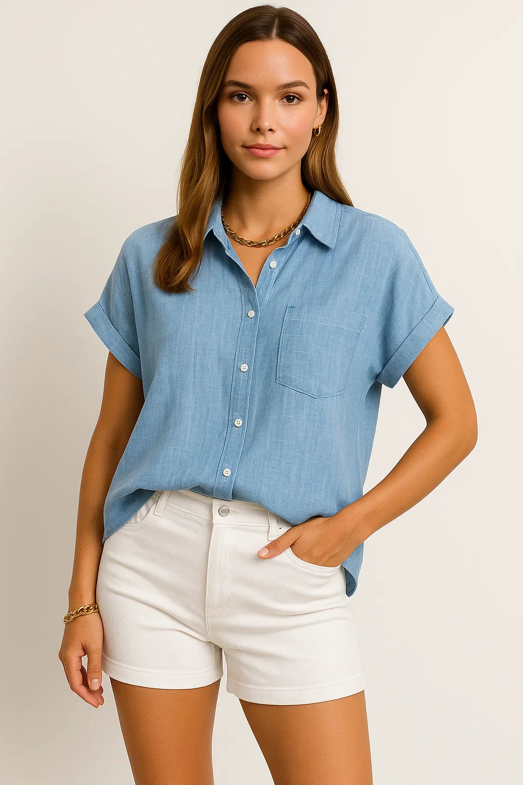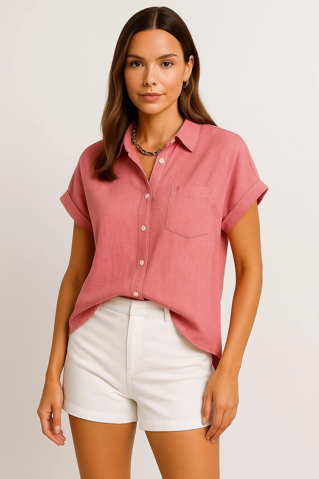 - Zeitloses Design: Die schlichte Optik mit kurzen Ärmeln macht diese Bluse zu einem stilvollen Begleiter für jede Jahreszeit.