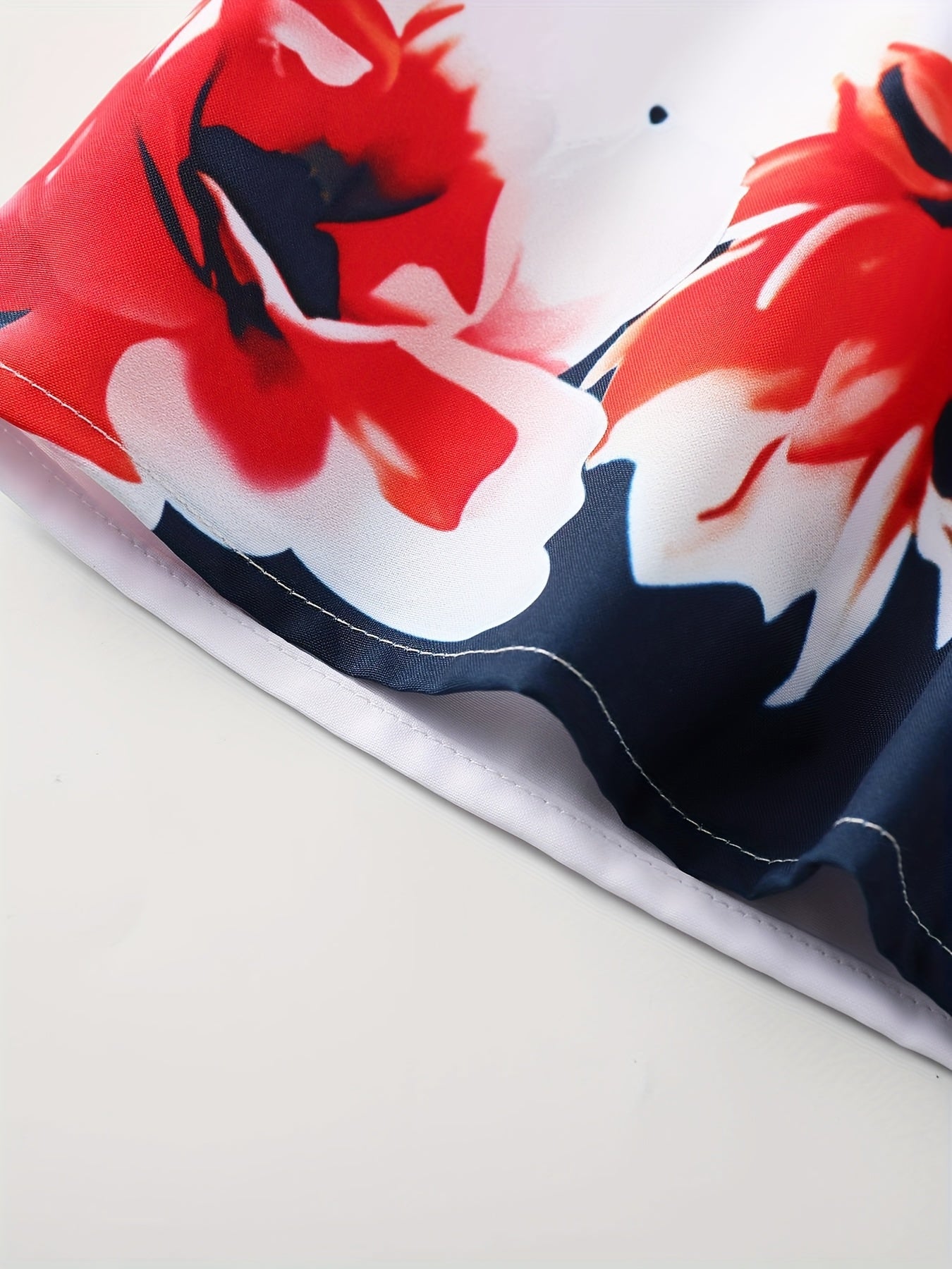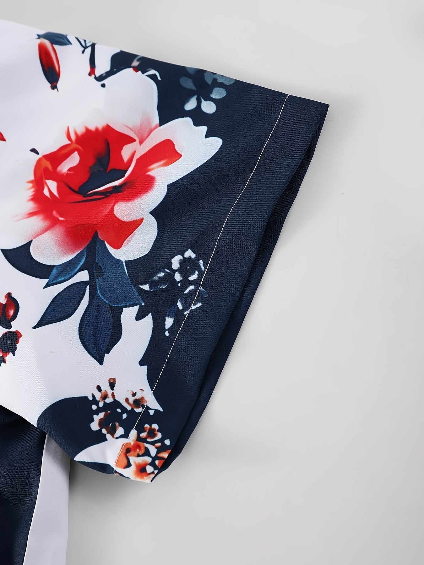 Leichtes Herren Kurzarm-Leinenhemd – Blumenmuster, Atmungsaktiv, Regular Fit, Perfekt für Sommer