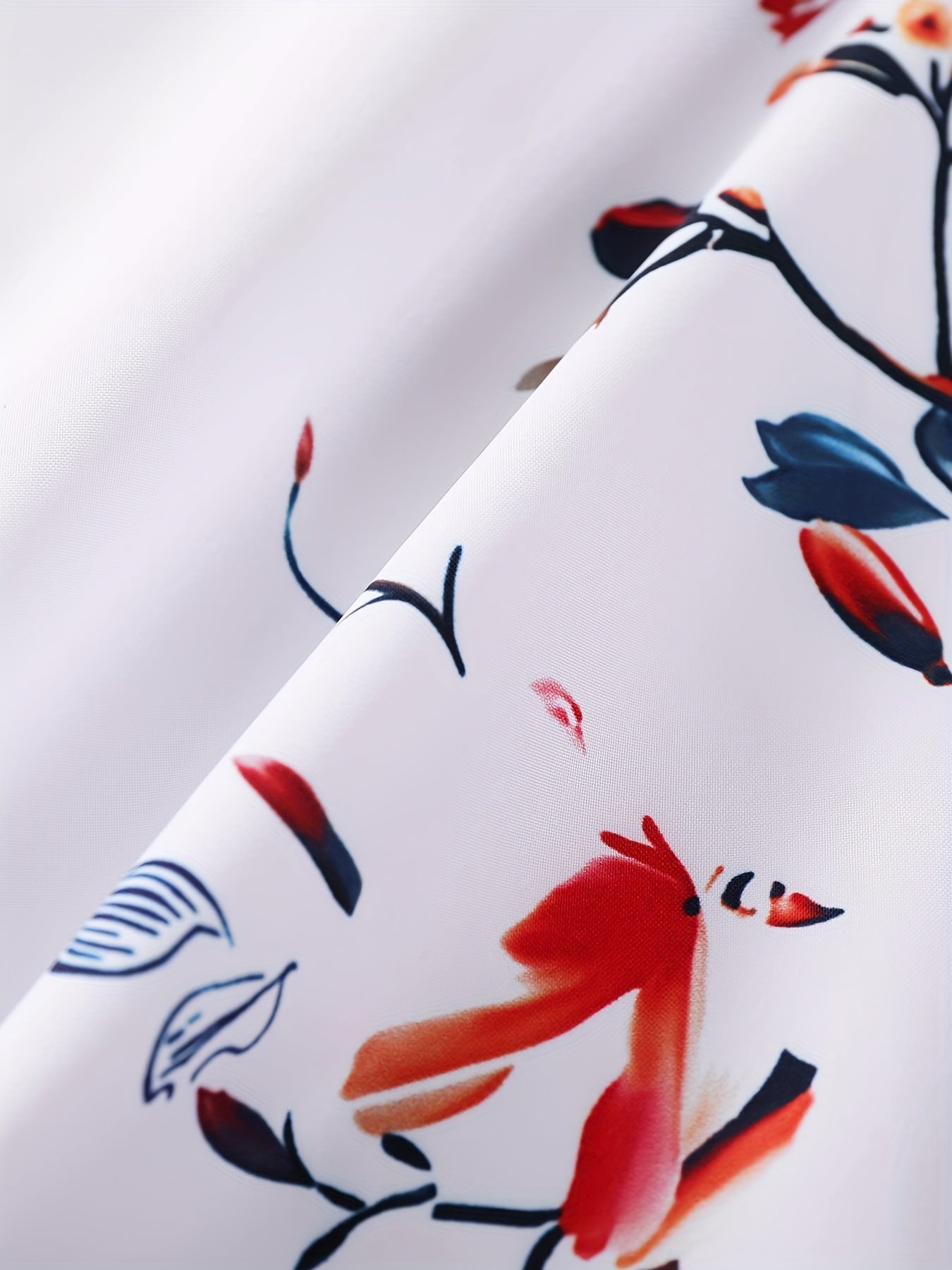 Leichtes Herren Kurzarm-Leinenhemd – Blumenmuster, Atmungsaktiv, Regular Fit