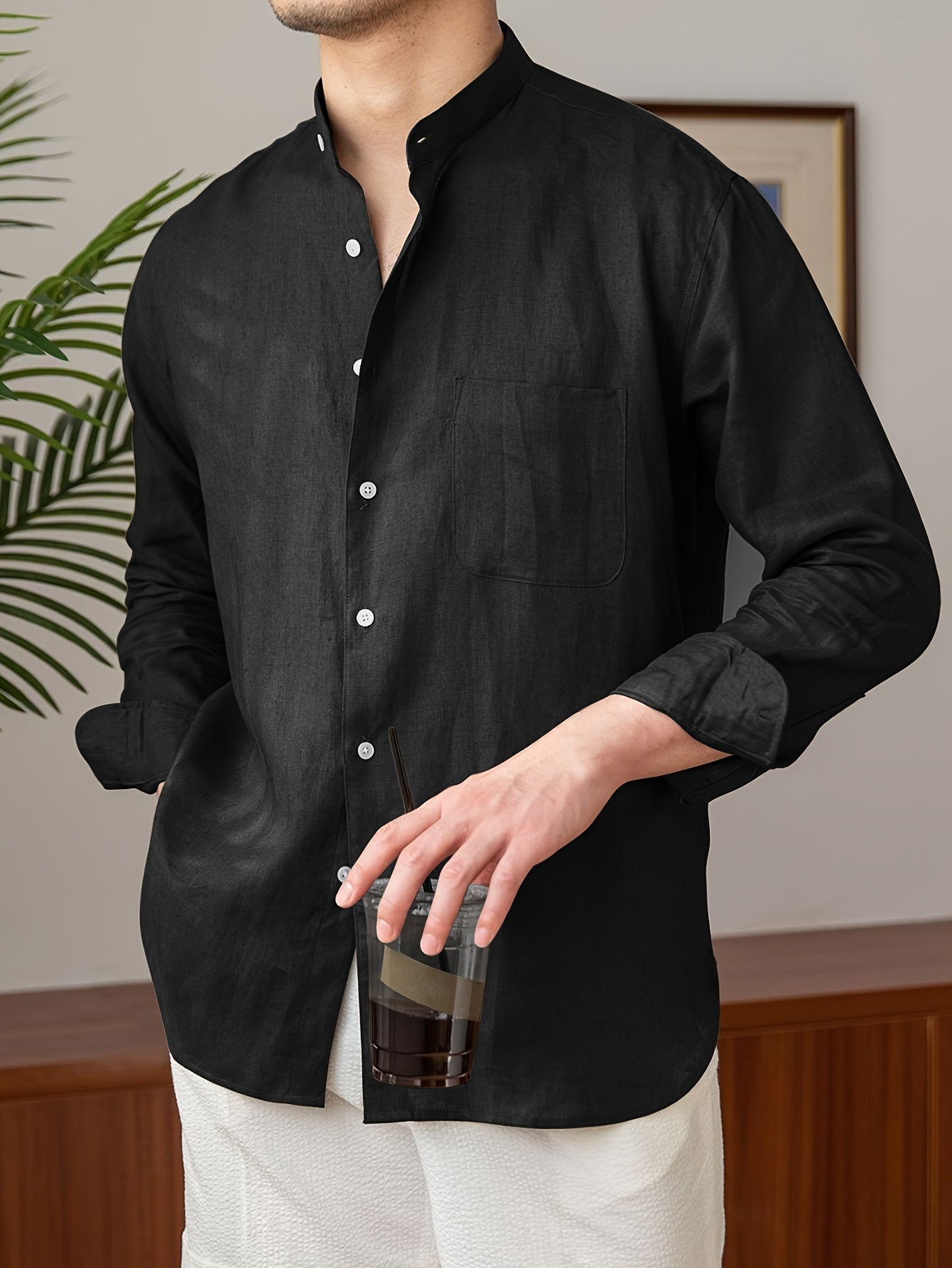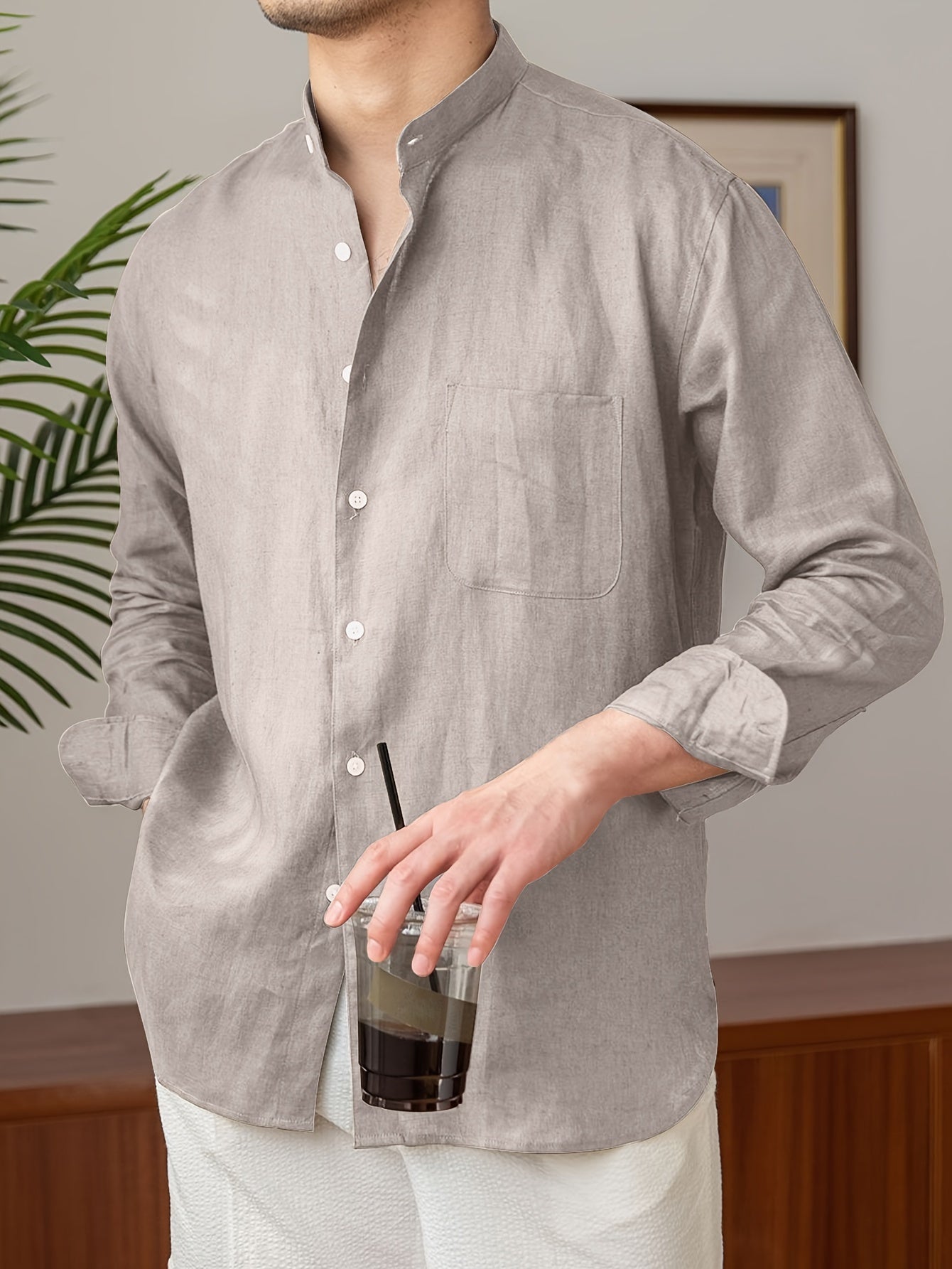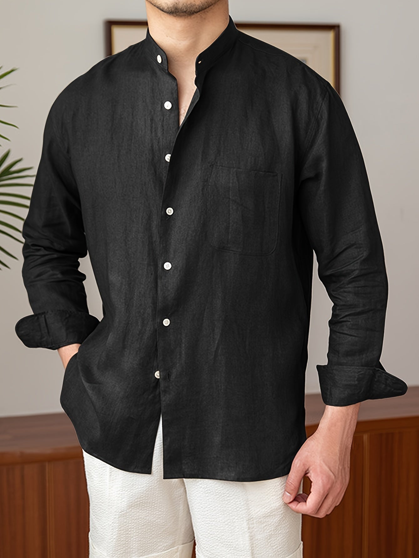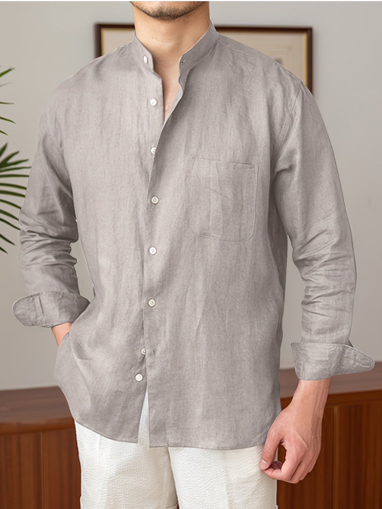 Leinenhemd für Herren – Leichtes, atmungsaktives Sommerhemd mit Stehkragen und langen Ärmeln