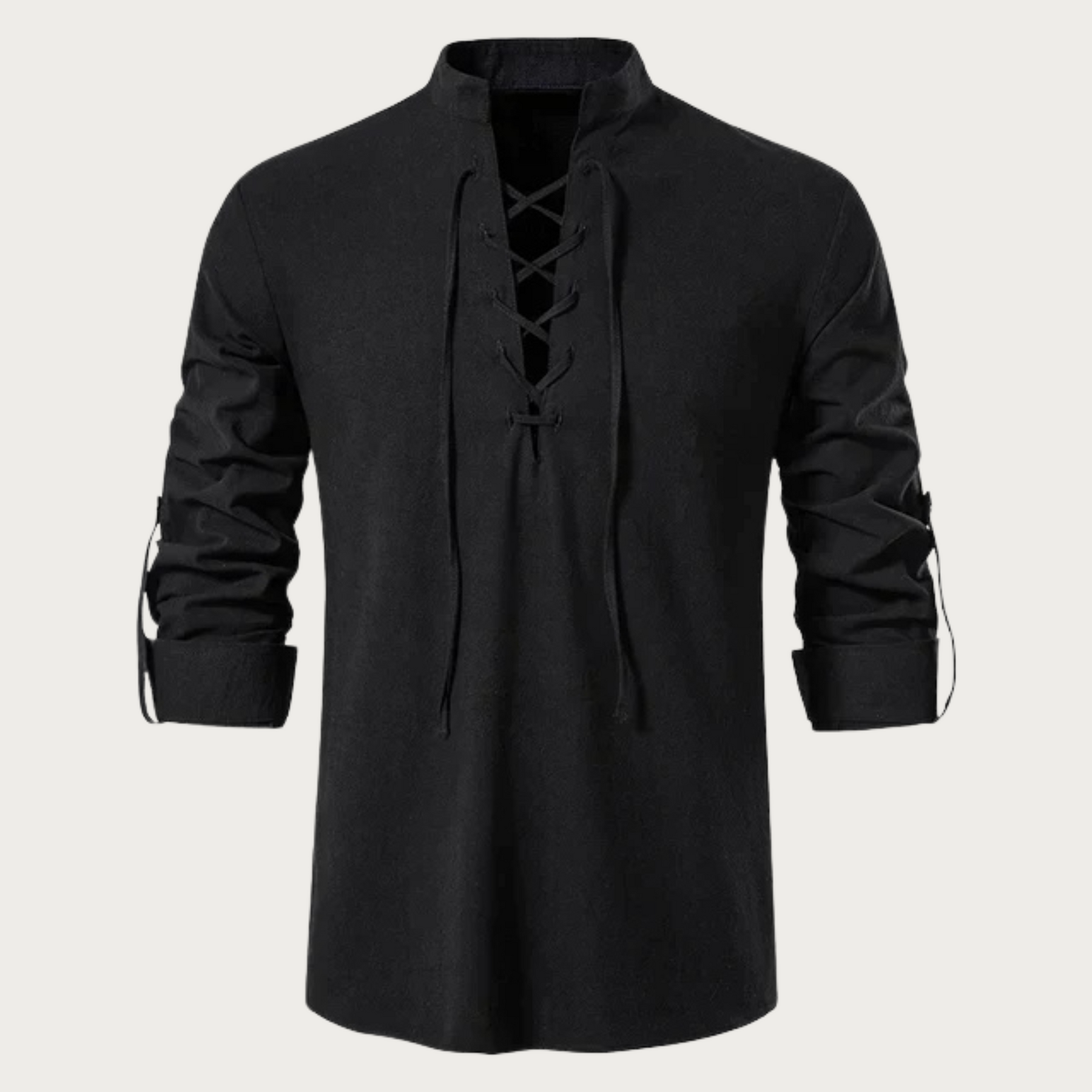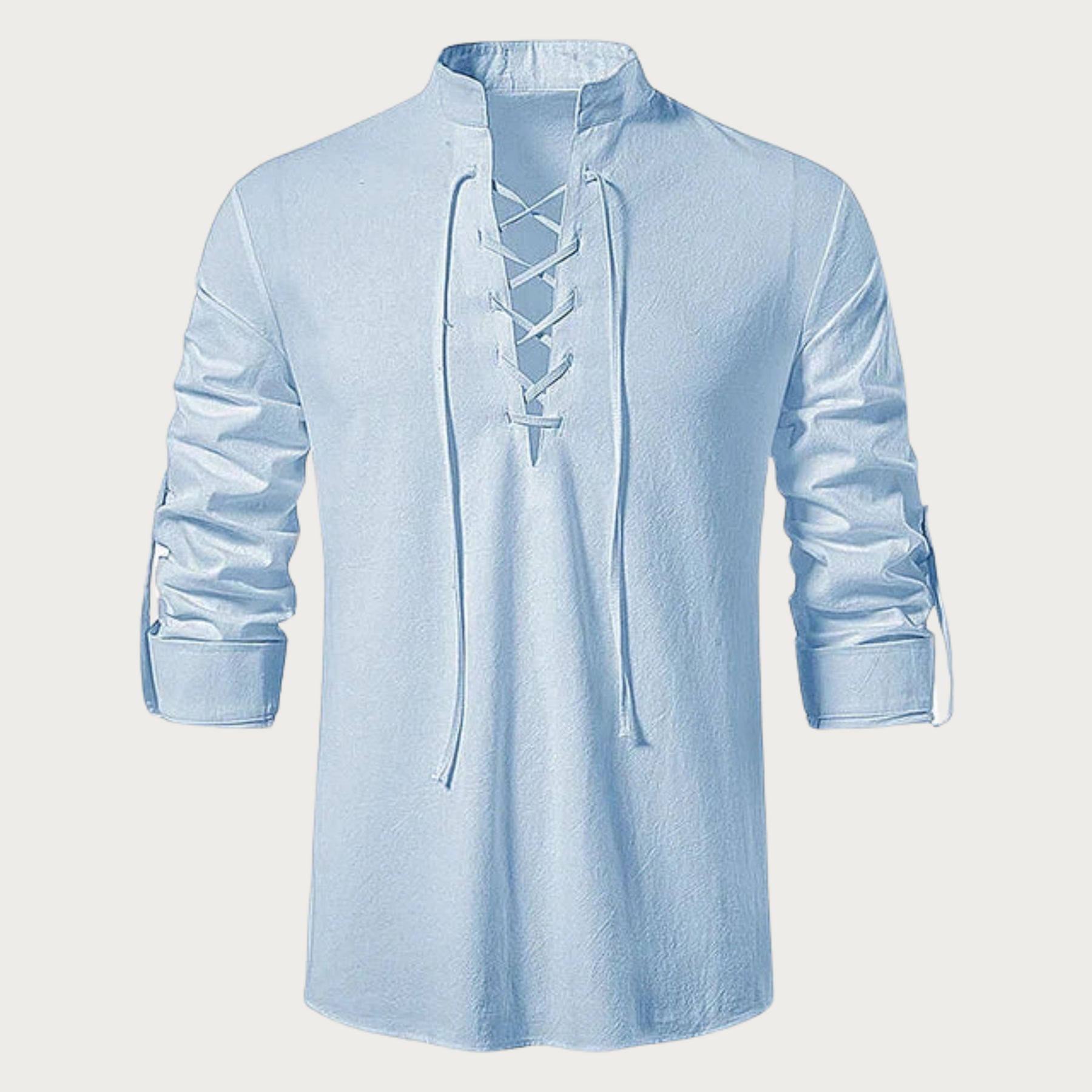 Louis - Herrenhemden mit V-Ausschnitt und Schnürung vorne