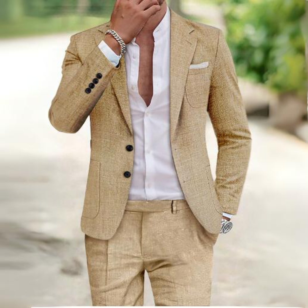 Lernen Sie den „Classic Luxe“ Leinenanzug kennen – eine gelungene Verschmelzung von Raffinesse und modernem Stil. Dieser Anzug wurde mit größter Sorgfalt entworfen, um Ihnen nicht nur einen anspruchsvollen Look zu verleihen, sondern auch maximalen Komfort zu bieten.