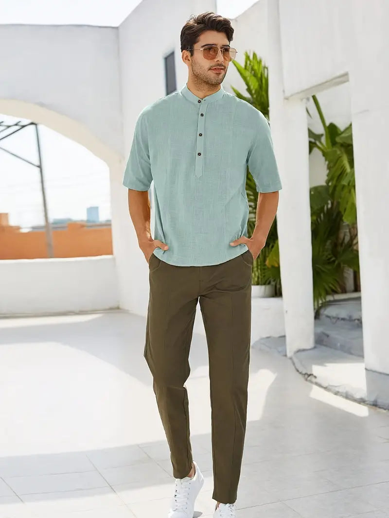 Rubin - Lässiges bequemes Kurzarmhemd aus Baumwolle