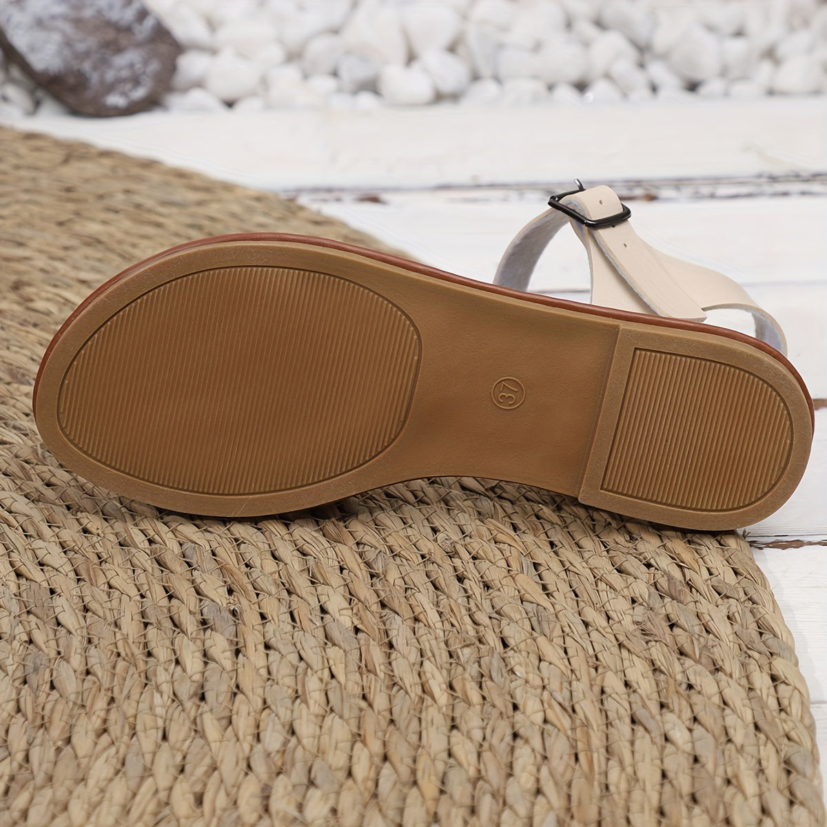 Treten Sie stilvoll in den Sommer mit diesen modischen flachen Sandalen, die Komfort und Eleganz vereinen. Das offene Zehendesign mit verstellbarem Knöchelriemen sorgt für einen sicheren Halt, während der zweifarbige Look einen trendigen Akzent setzt. Hergestellt aus hochwertigen synthetischen Materialien, Stoff und EVA, sind diese Sandalen leicht und langlebig – perfekt für den Strand, den Urlaub oder den Alltag. Die weiche EVA-Sohle bietet angenehme Dämpfung für den ganzen Tag.