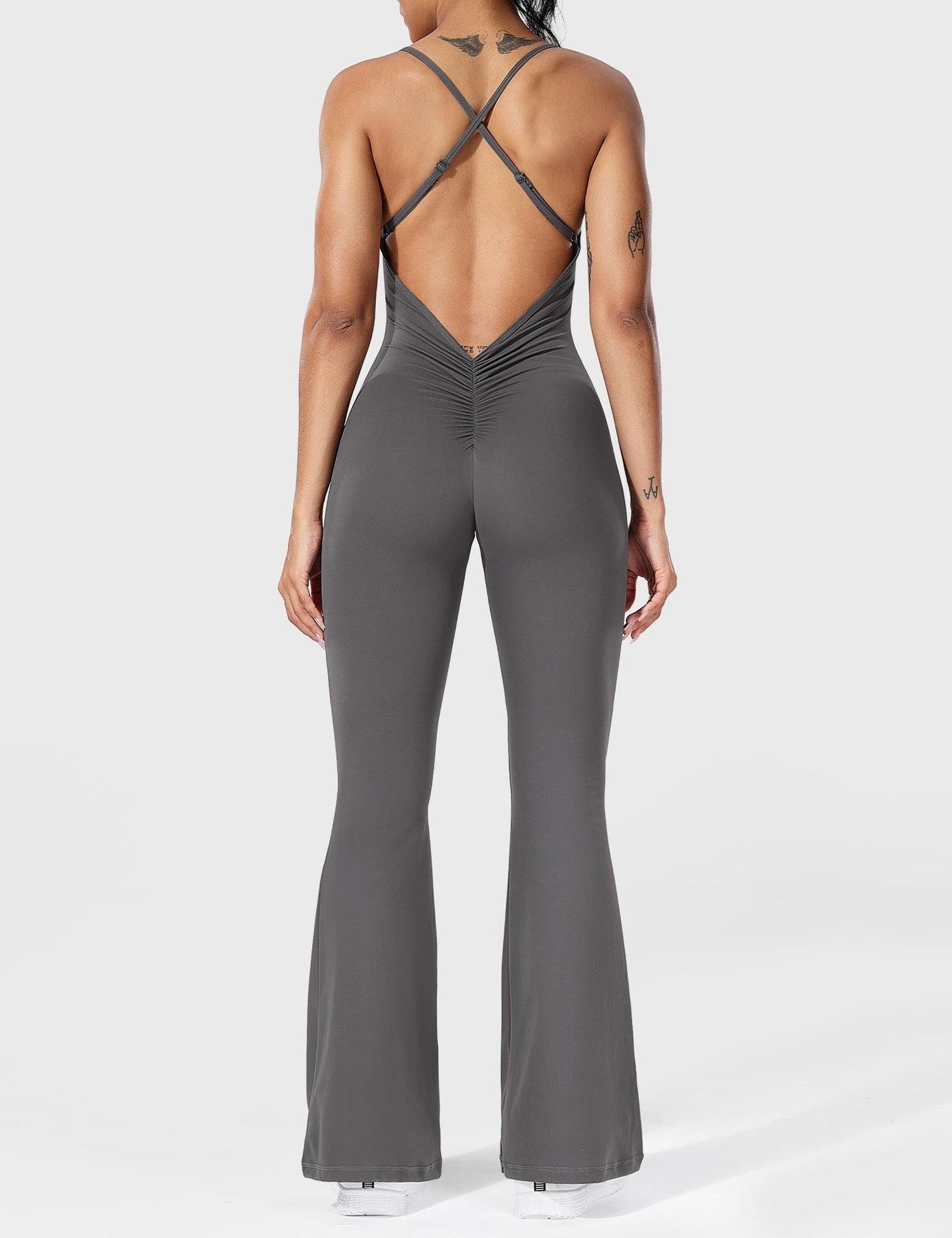 Serafina Backless Flare Jumpsuit mit verstellbaren Trägern