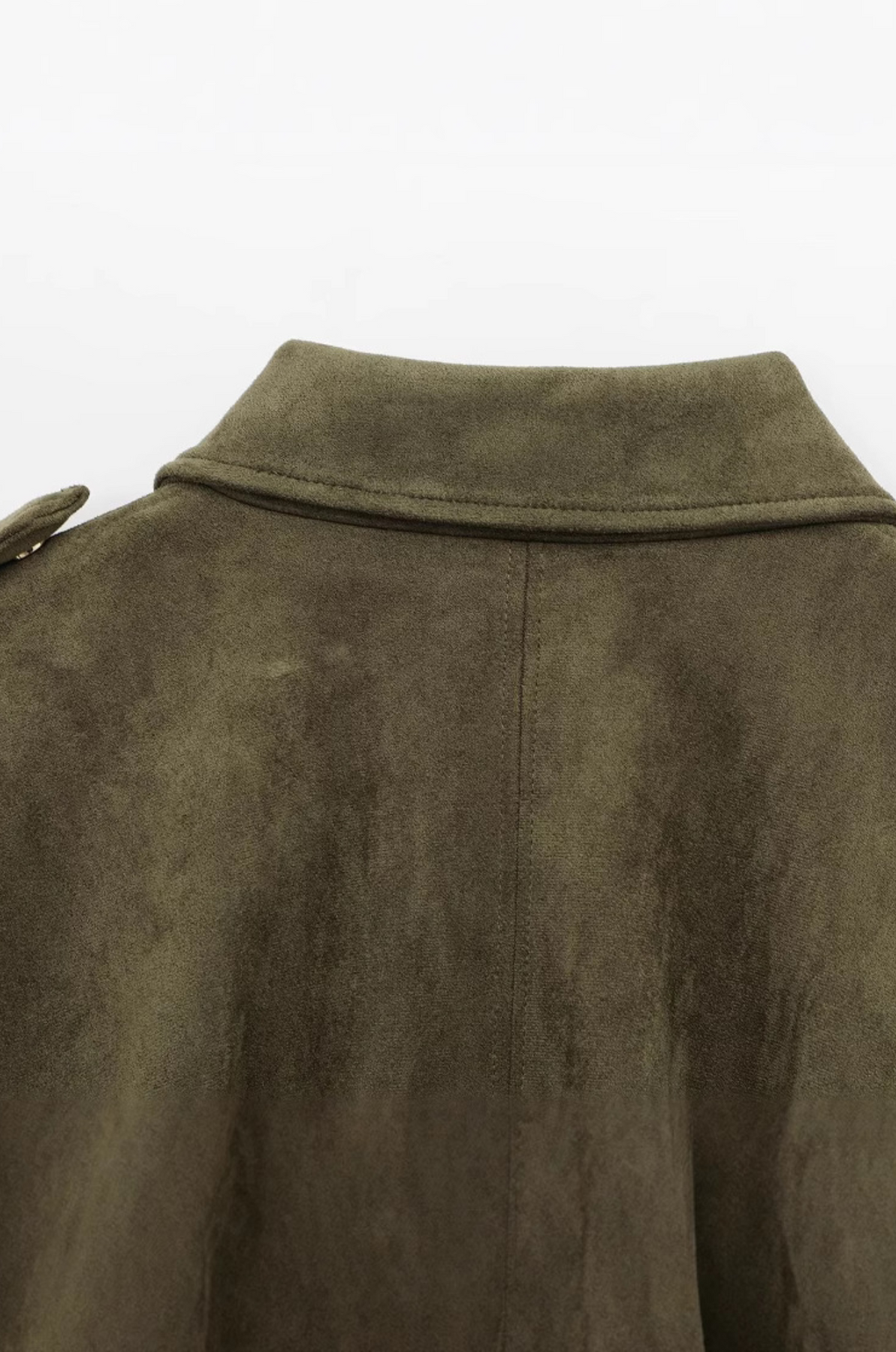 Das weiche Wildledermaterial verleiht einen luxuriösen Look, während die lockere Passform für einen mühelos modischen Look sorgt.