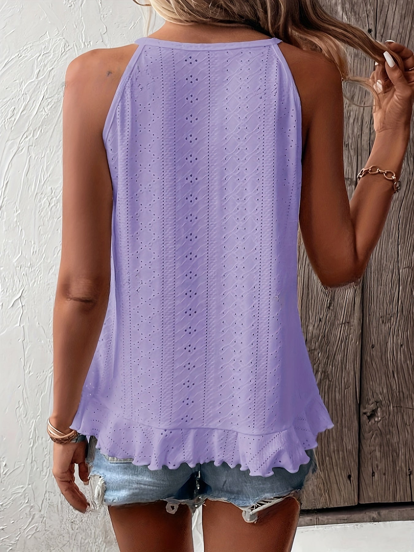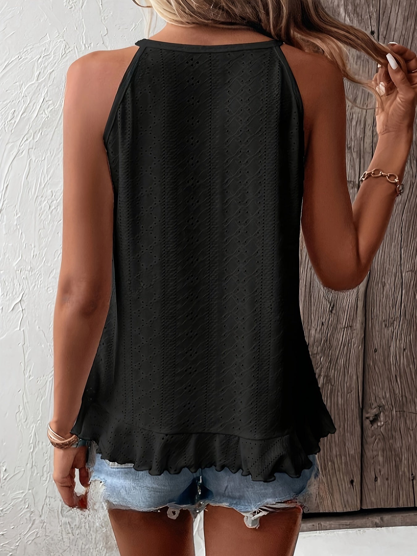 Spitzenstickerei Rüschen Top Ärmelloses mit Asymmetrischem Saum