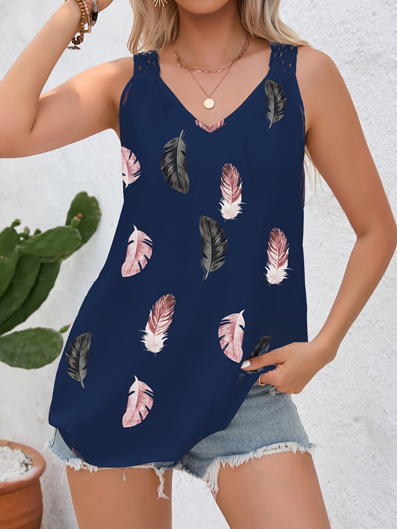 V-Ausschnitt Top mit Spitze & Print – Sommerliches ärmelloses Shirt Atmungsaktiv