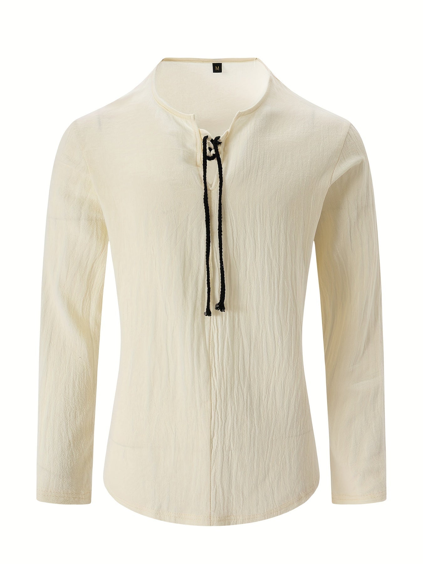 Vintage-Leinenhemd – Langarm Henley-Shirt aus Baumwollmischung, Atmungsaktiv