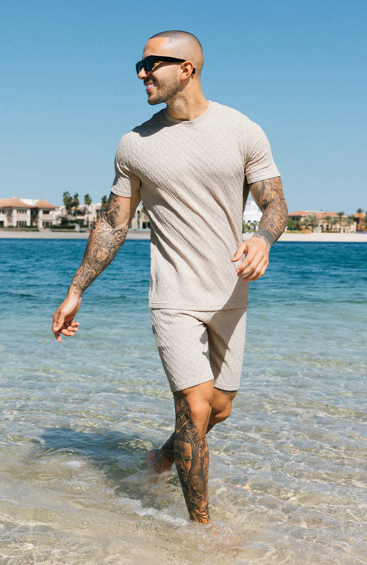 Peppen Sie Ihre Garderobe mit diesem Slim Fitting Short Shirt Set auf, das für alle entworfen wurde, die sowohl Stil als auch Komfort schätzen. Das Set besteht aus einem schlanken, schmal geschnittenen Kurzhemd, das sich dem Körper anpasst und für einen scharfen, modernen Look sorgt. Dieses Hemd aus einer hochwertigen Mischung atmungsaktiver Materialien bietet ultimativen Komfort und sorgt gleichzeitig für eine elegante Silhouette. Es ist perfekt für einen Tag am Strand oder einen legeren Ausflug und kombiniert Mode mit Funktionalität, damit Sie in jeder Situation cool und selbstbewusst bleiben.