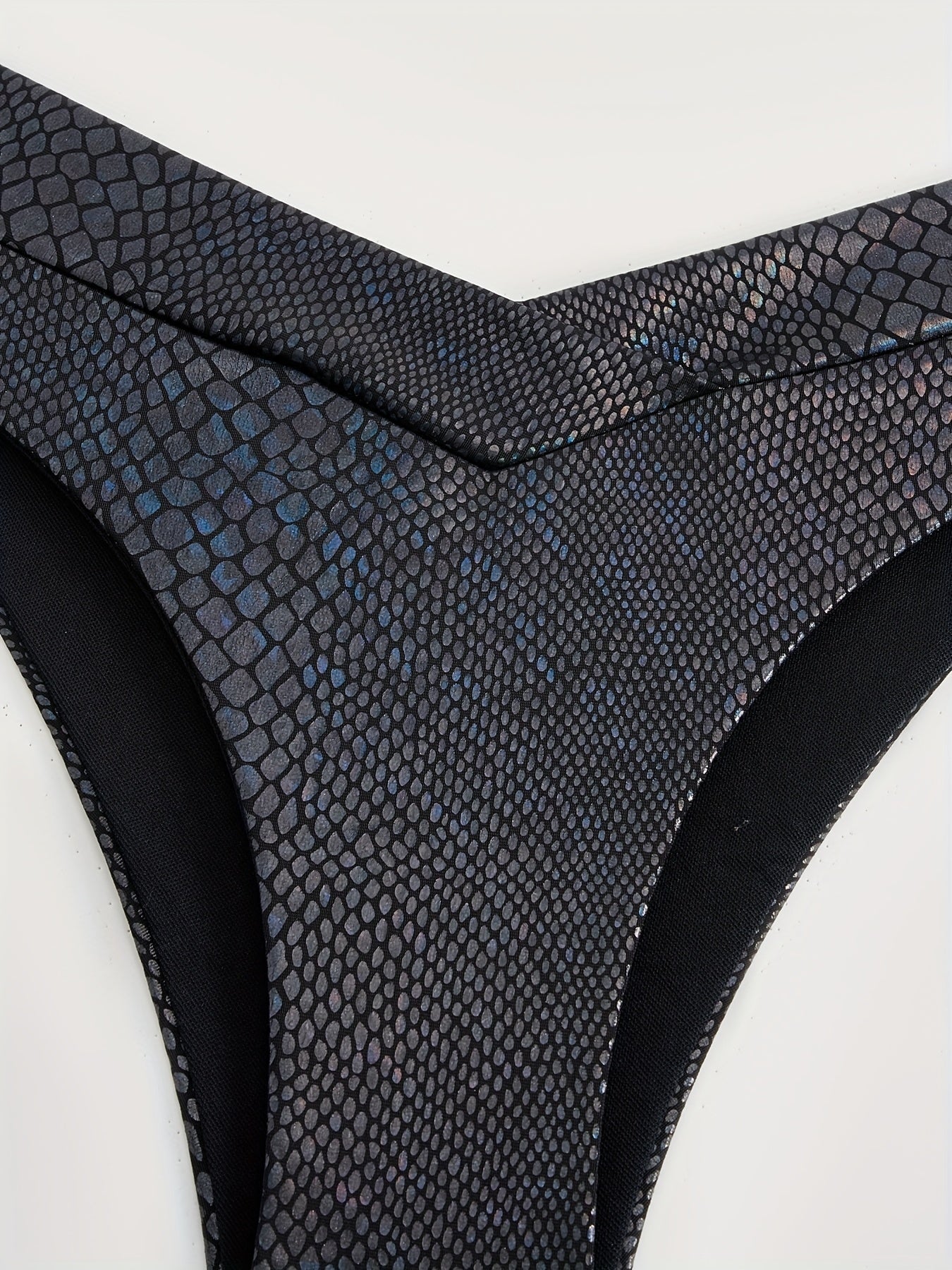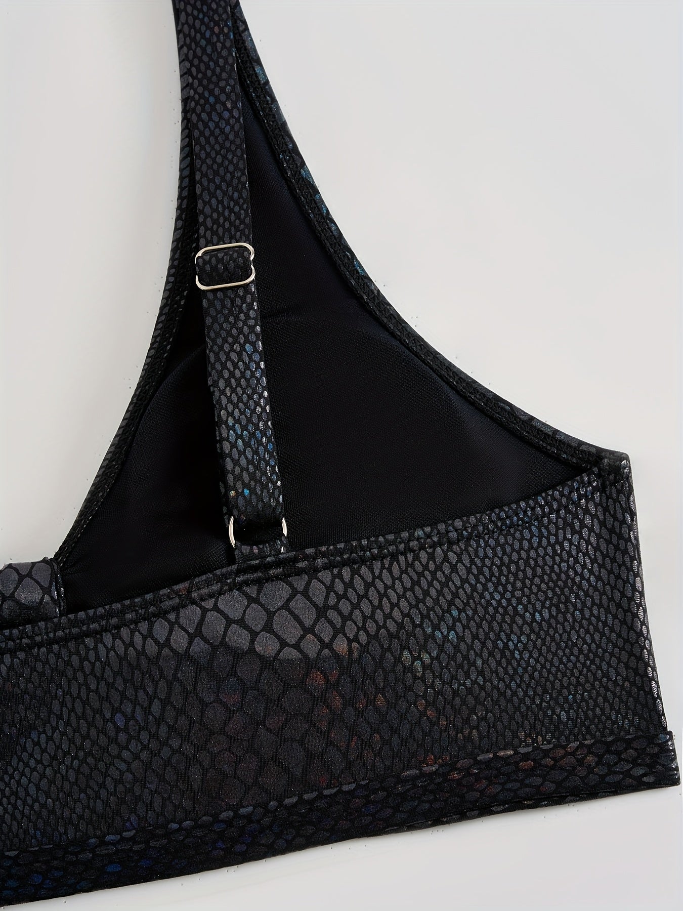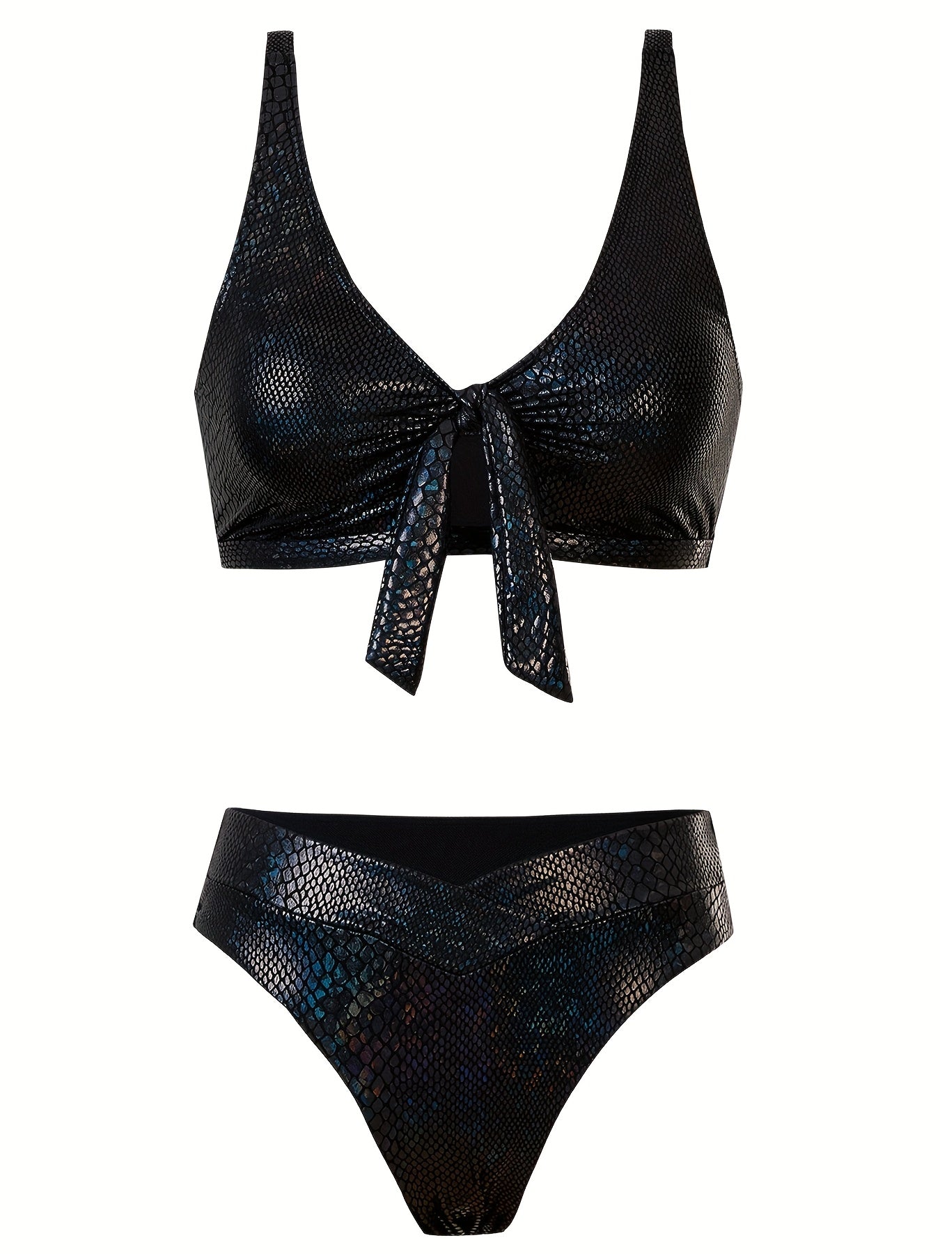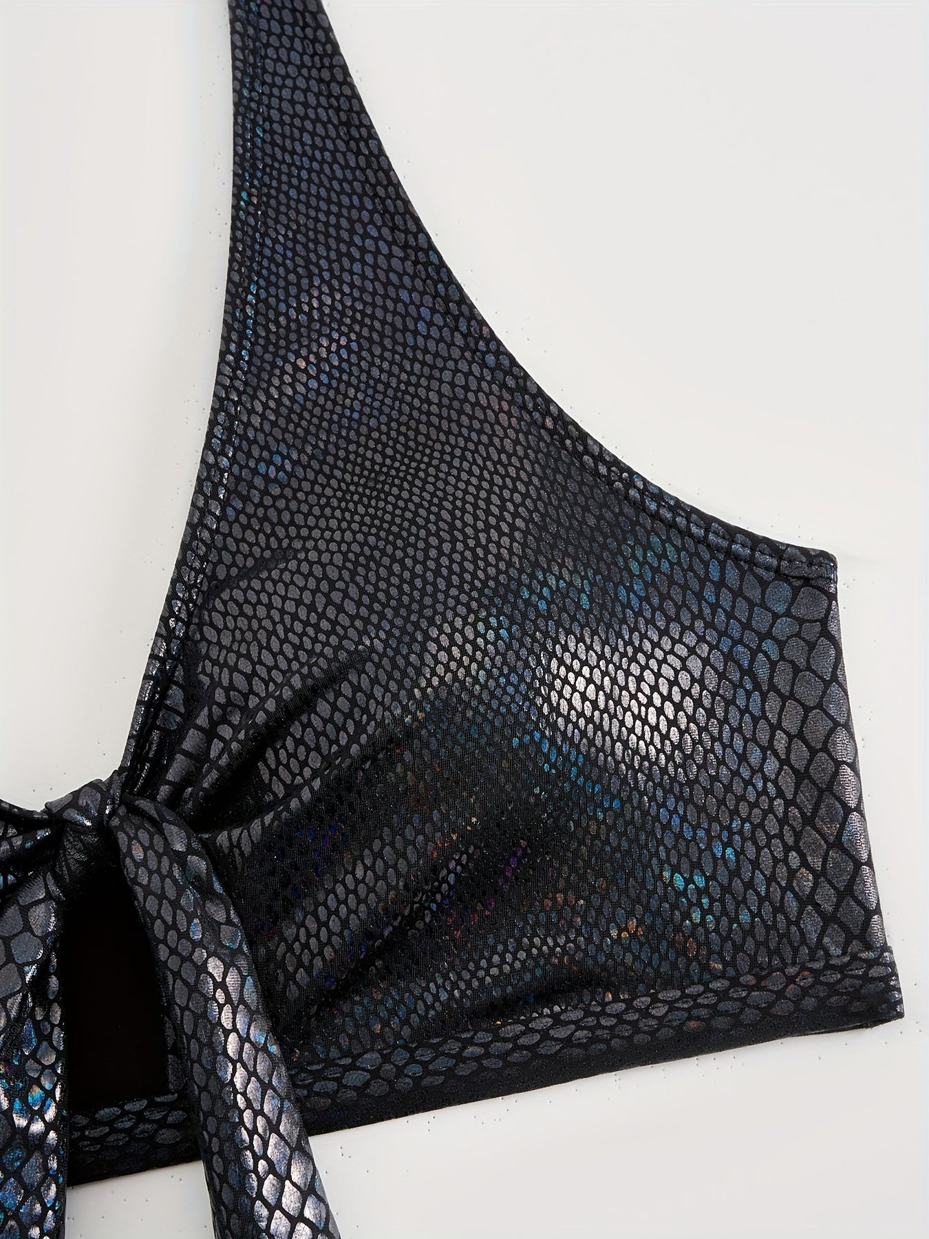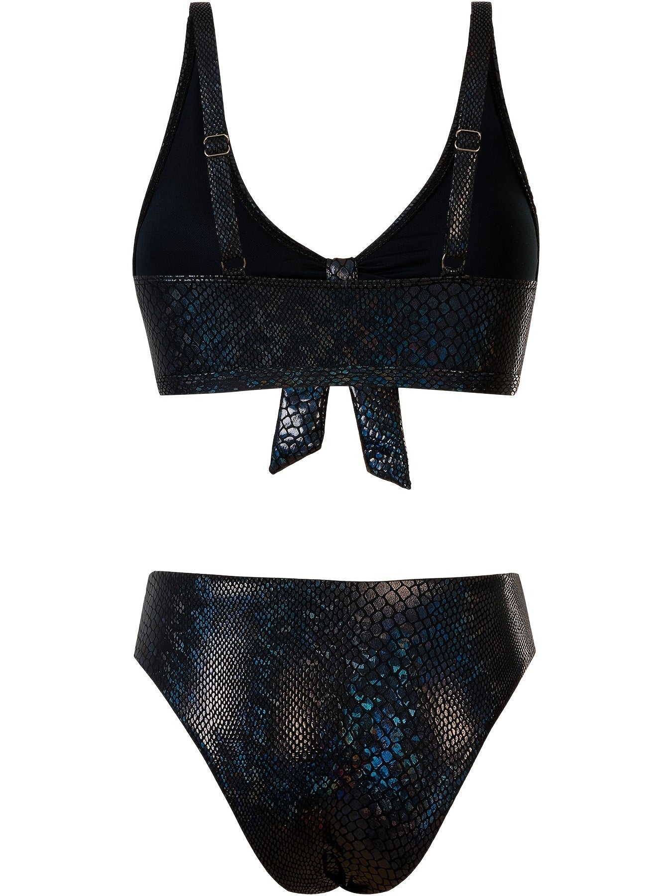Zweiteiliger Badeanzug – Schlangenhaut-Design, Cross-Waist-Shorts, Bindeband