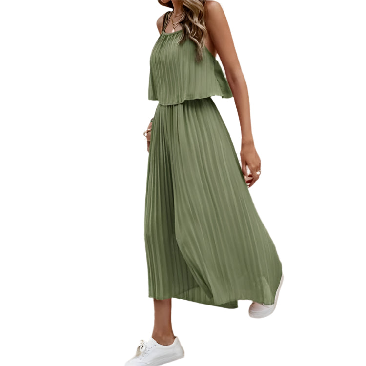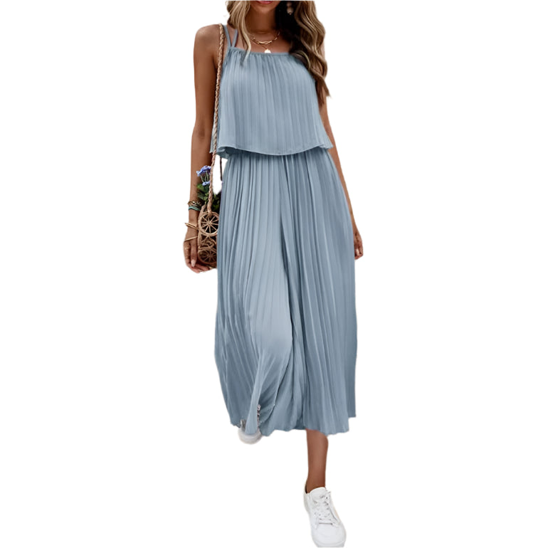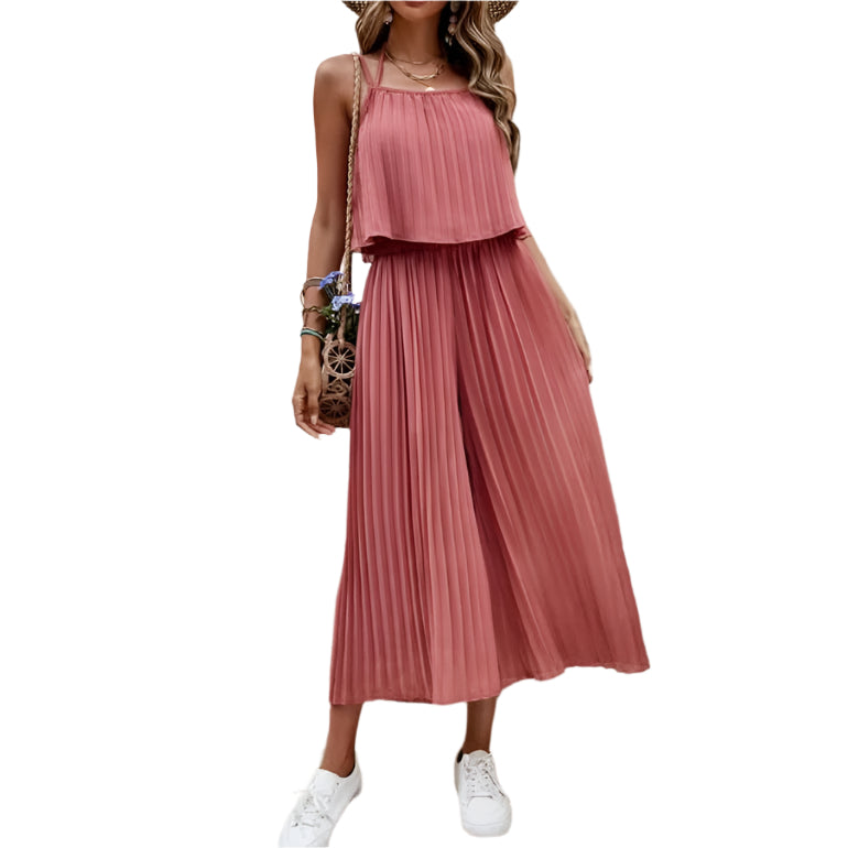 Beginnen Sie die Sommersaison mit diesem eleganten und luftigen Zweiteiler, der aus einem zarten Top mit Spaghetti-Trägern und einem schwingenden, plissierten Maxirock besteht. Entworfen, um sowohl Eleganz als auch Komfort zu bieten, ist dieses Set perfekt für Urlaube, entspannte Ausflüge oder den Tag über. Die minimalistische Silhouette und das leichte Gefühl machen es zur idealen Wahl, um kühl und stilvoll in der Sonne zu bleiben.