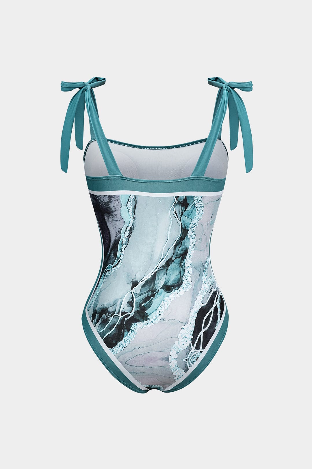 Angela | Zweiteiliges Badeanzug-Set mit abstraktem Print, Schleifen-Trägern und Pareo